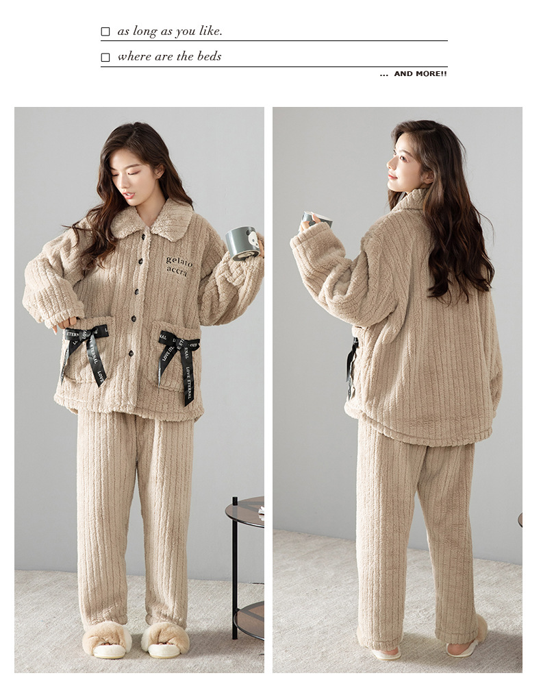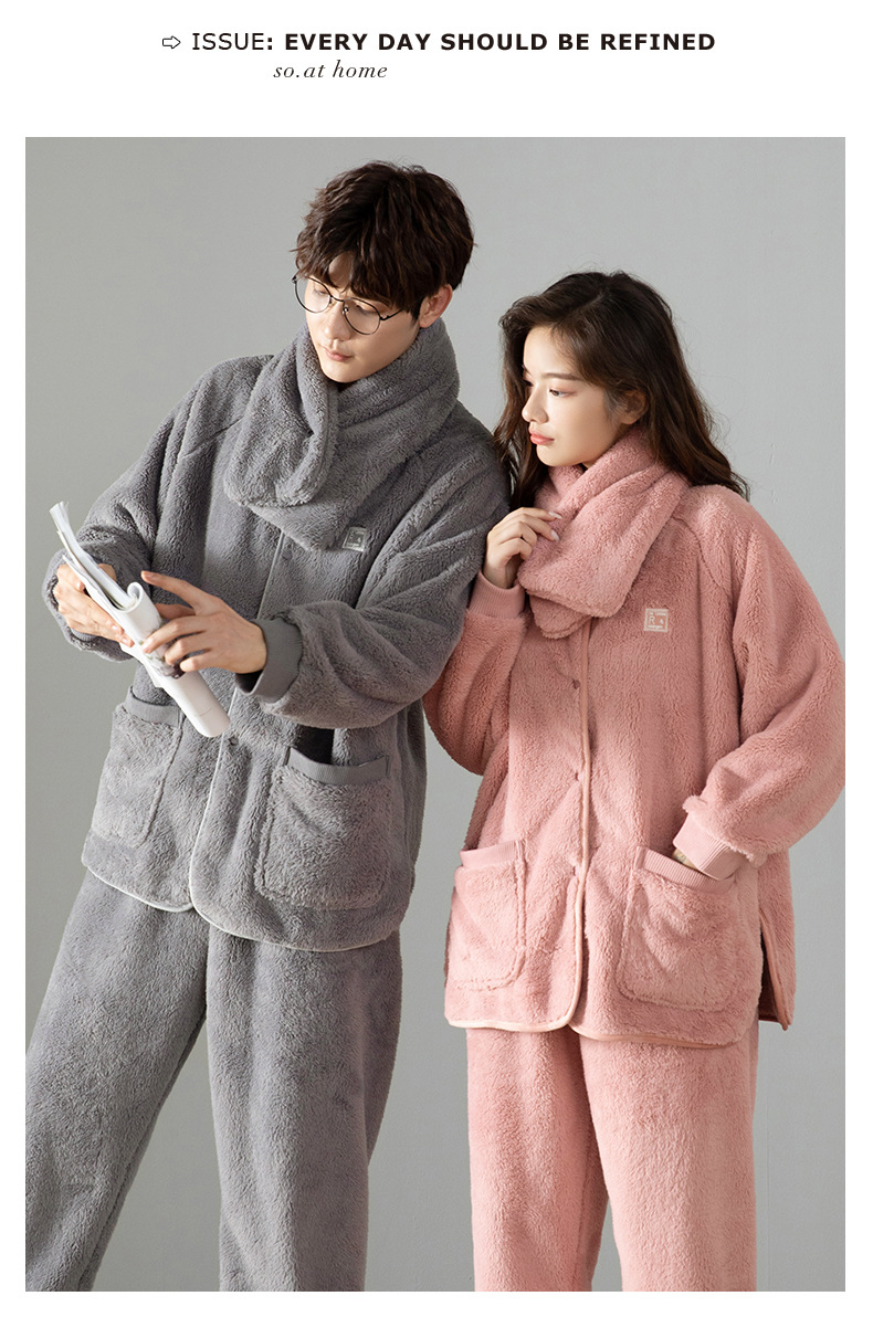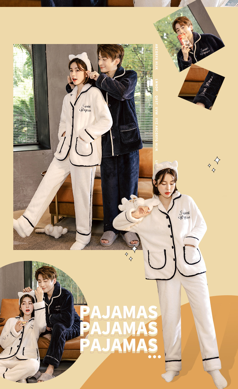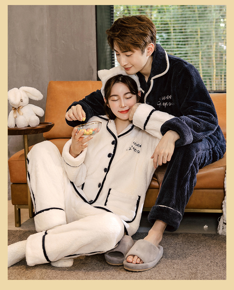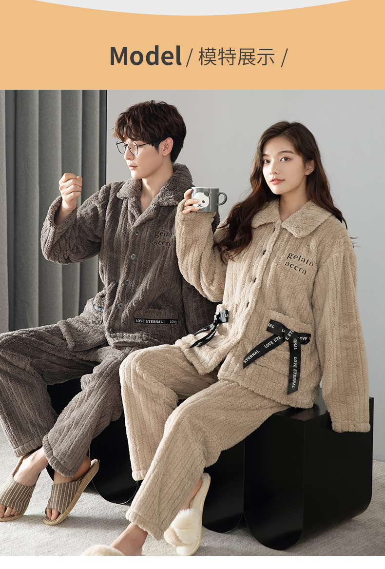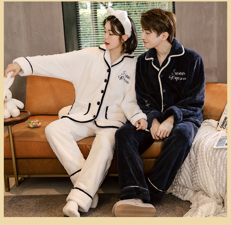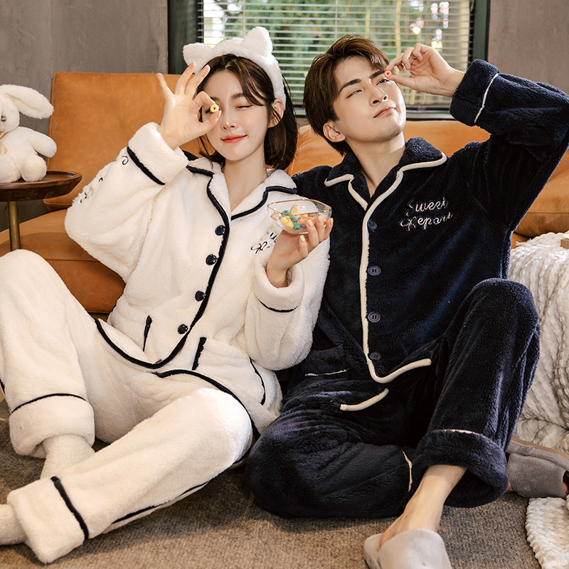 잠옷 여성의 겨울 두꺼운 산호 양털 남자 카디건 플란넬 홈 옷 플러시 따뜻한 가을/겨울 커플 세트