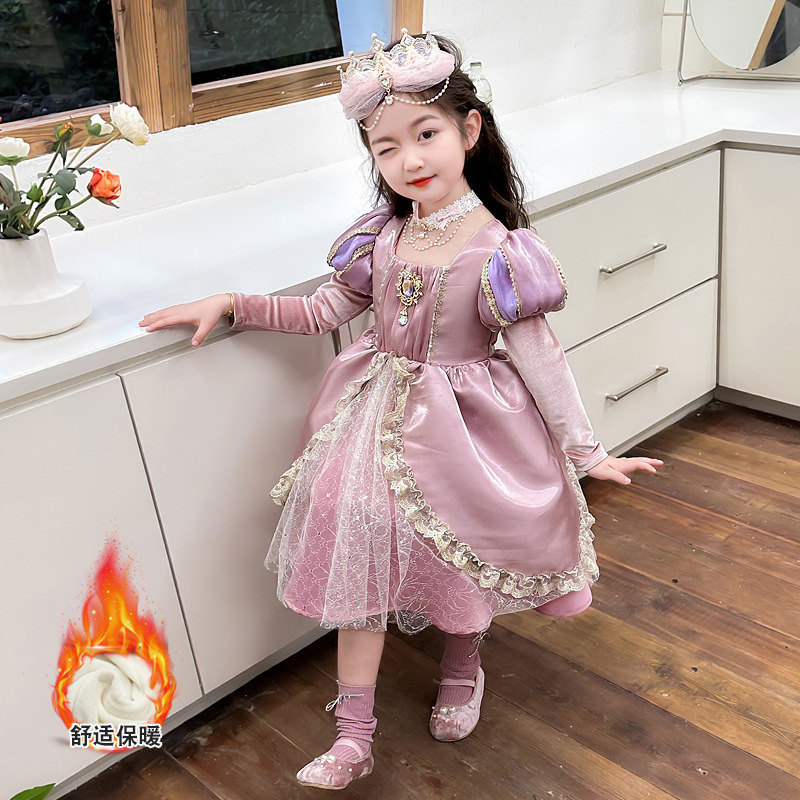 소녀 로리타 원피스 가을과 겨울 새로운 어린이 생일 원피스 인어 벨벳 아리엘 공주 원피스