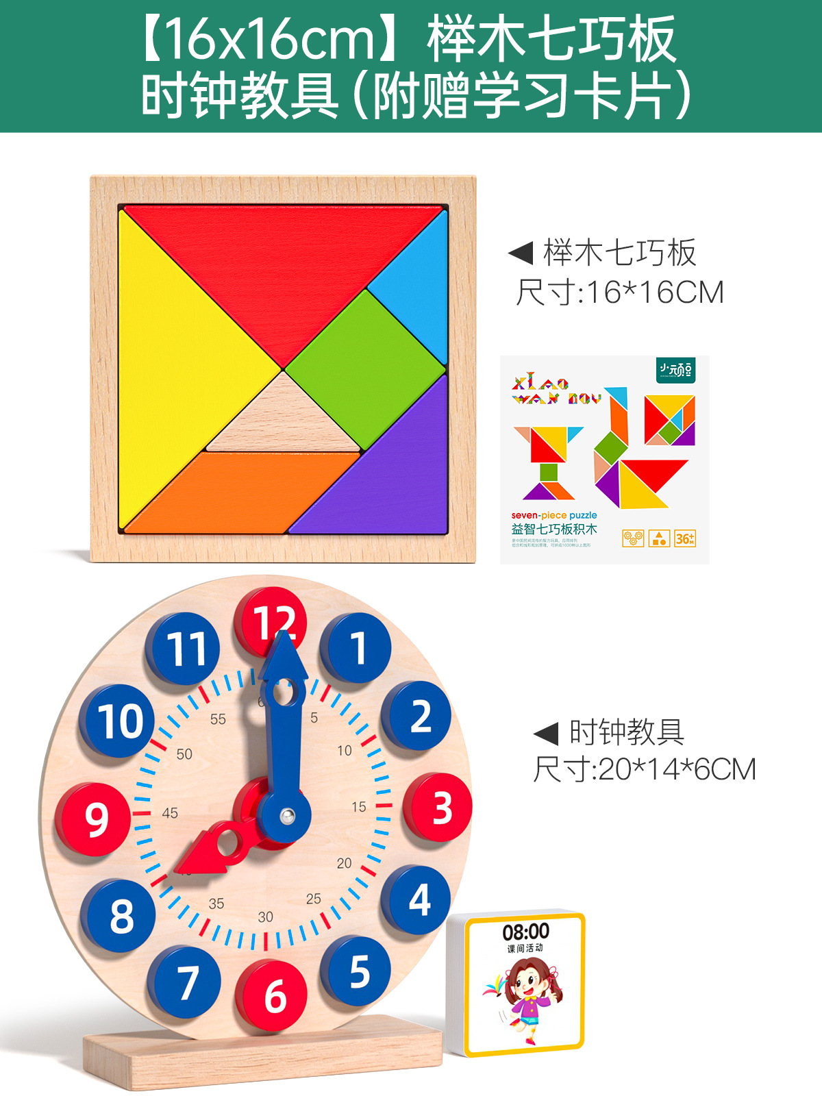 • [16x16cm] 너도밤나무 직소 퍼즐 + 시계 교구 (학습 카드 포함)