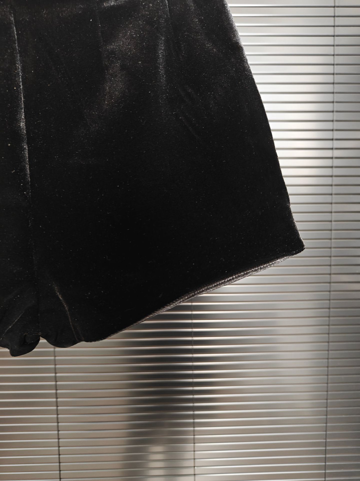 독특한 디자인의 하이웨이스트 다용도 루즈핏 반바지, 고급스러운 블랙 벨벳 반바지, 겨울용 여성 반바지