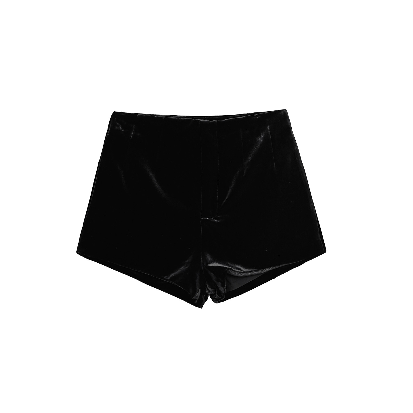 독특한 디자인의 하이웨이스트 다용도 루즈핏 반바지, 고급스러운 블랙 벨벳 반바지, 겨울용 여성 반바지스토어 가기