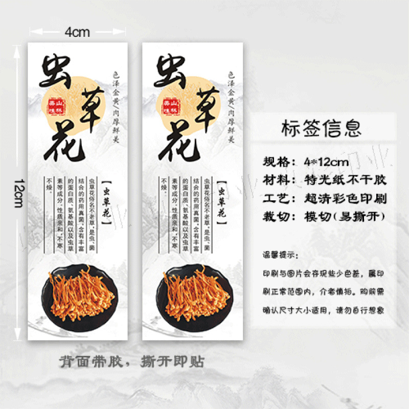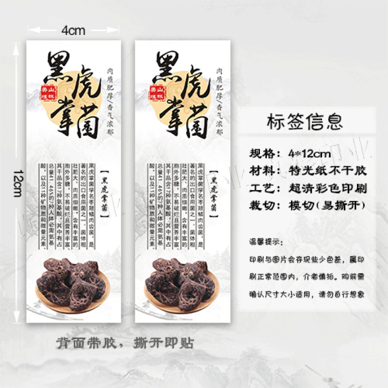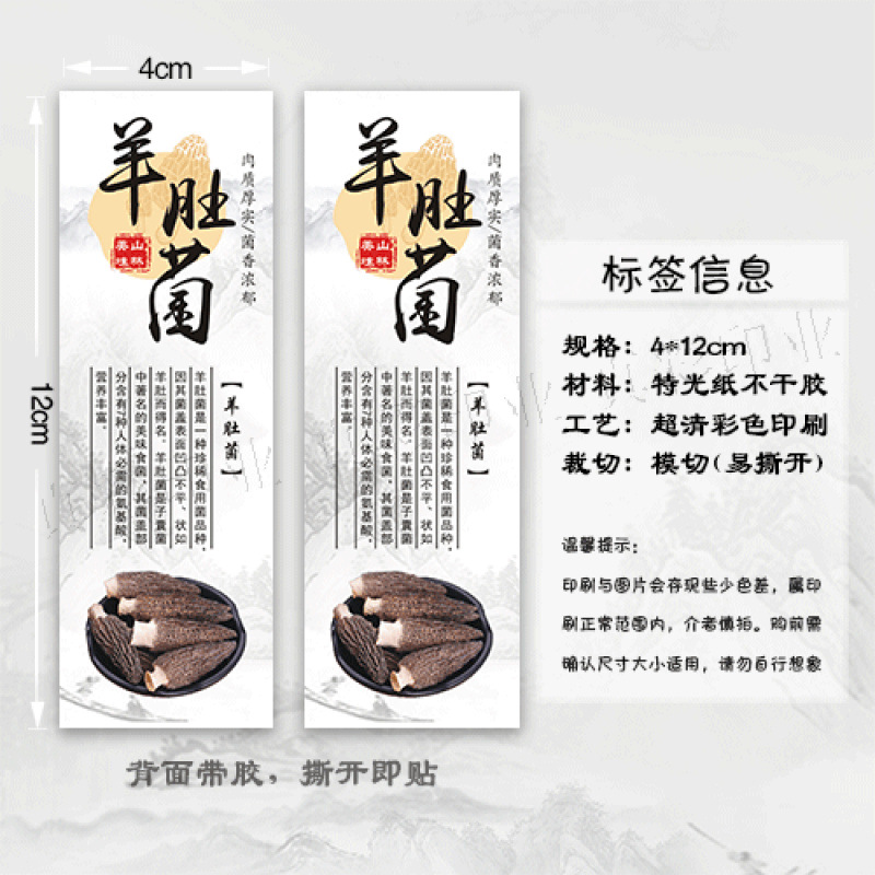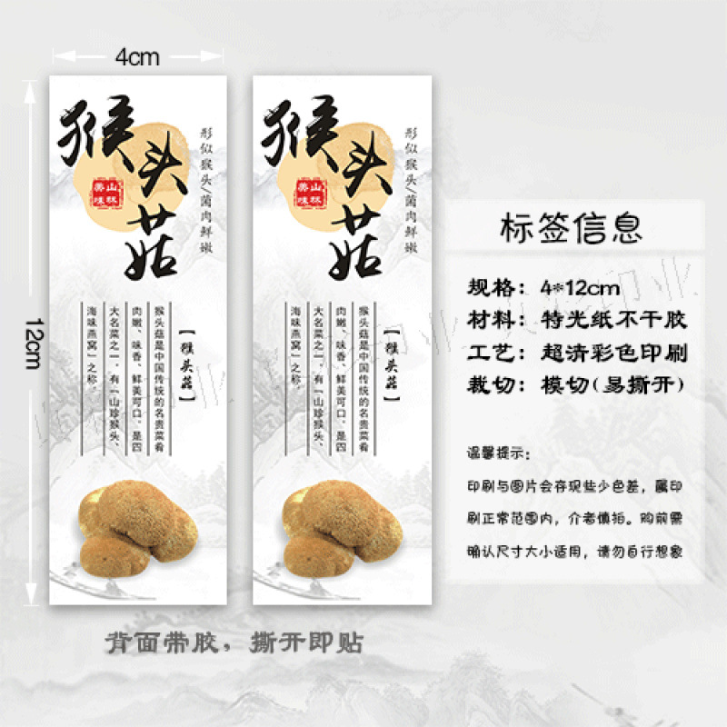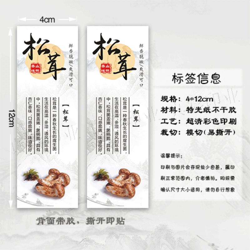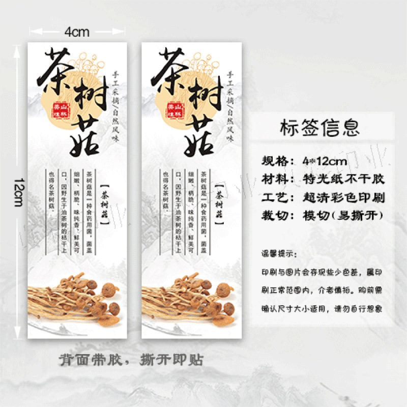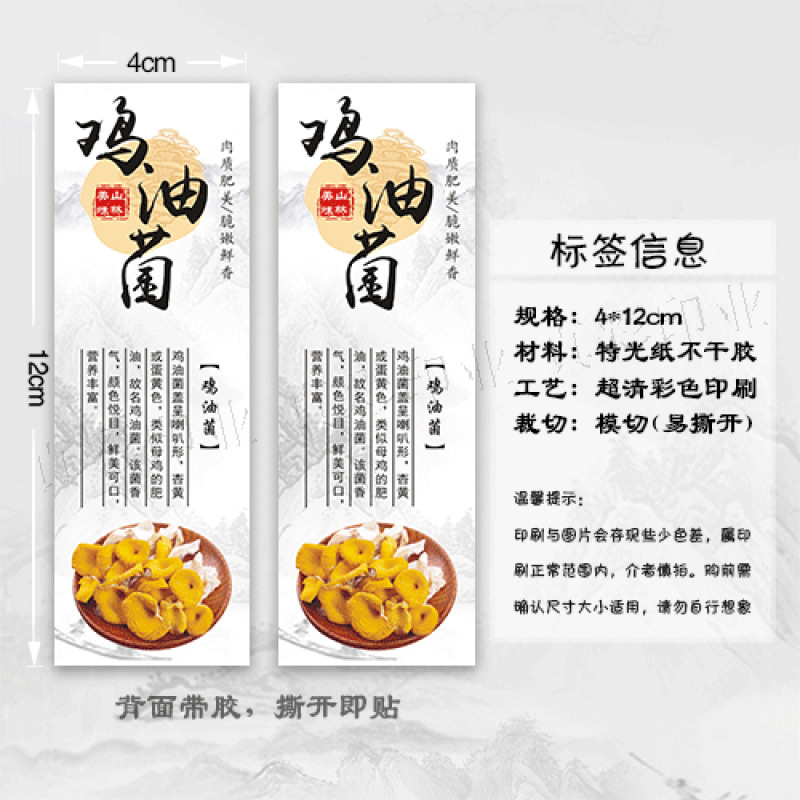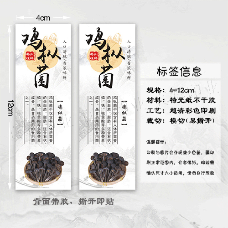 버섯 Tricholoma matsutake, 데이 릴리, cordyceps 꽃 스티커 Morel Tremella eryngii Pleurotus eryngii 및 chanterelles 건조 용품 항아리 라벨