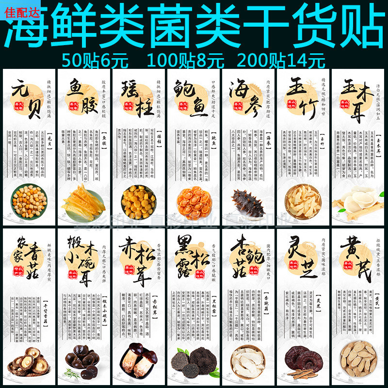 버섯 Tricholoma matsutake, 데이 릴리, cordyceps 꽃 스티커 Morel Tremella eryngii Pleurotus eryngii 및 chanterelles 건조 용품 항아리 라벨스토어 가기