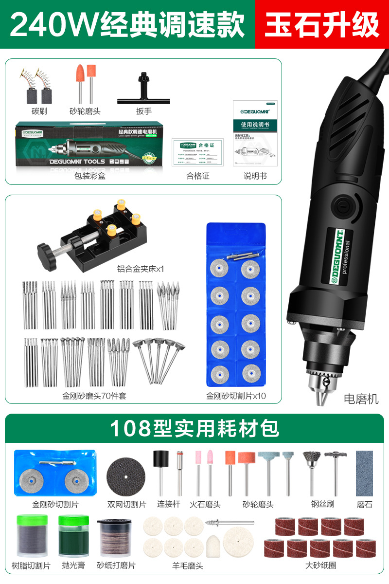 • [240W/6단 속도 조절/0.6-6.5 클램핑] 옥 조각 및 돌 조각 + 무료 108 액세서리
