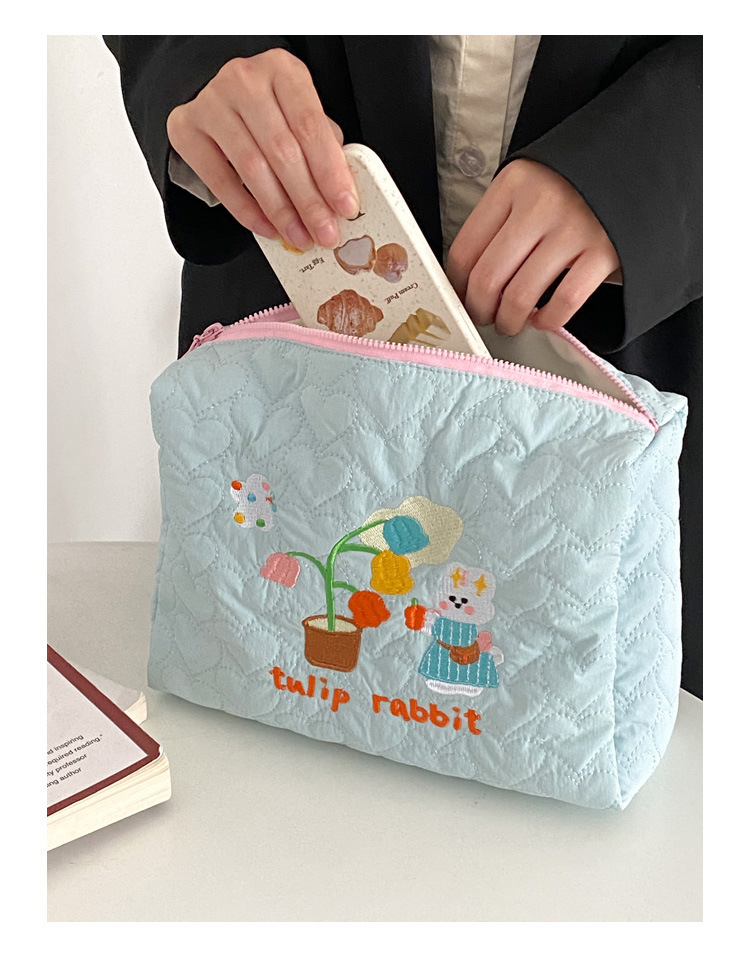 새로운 귀여운 토끼 수 놓은 대용량 미라 가방 이모 타월 가방 화장품 가방 여성용 기저귀 화장품 보관