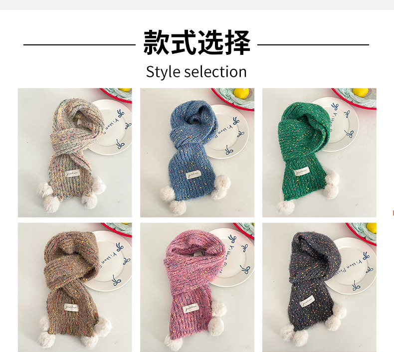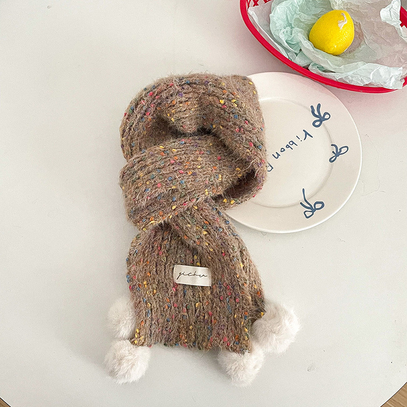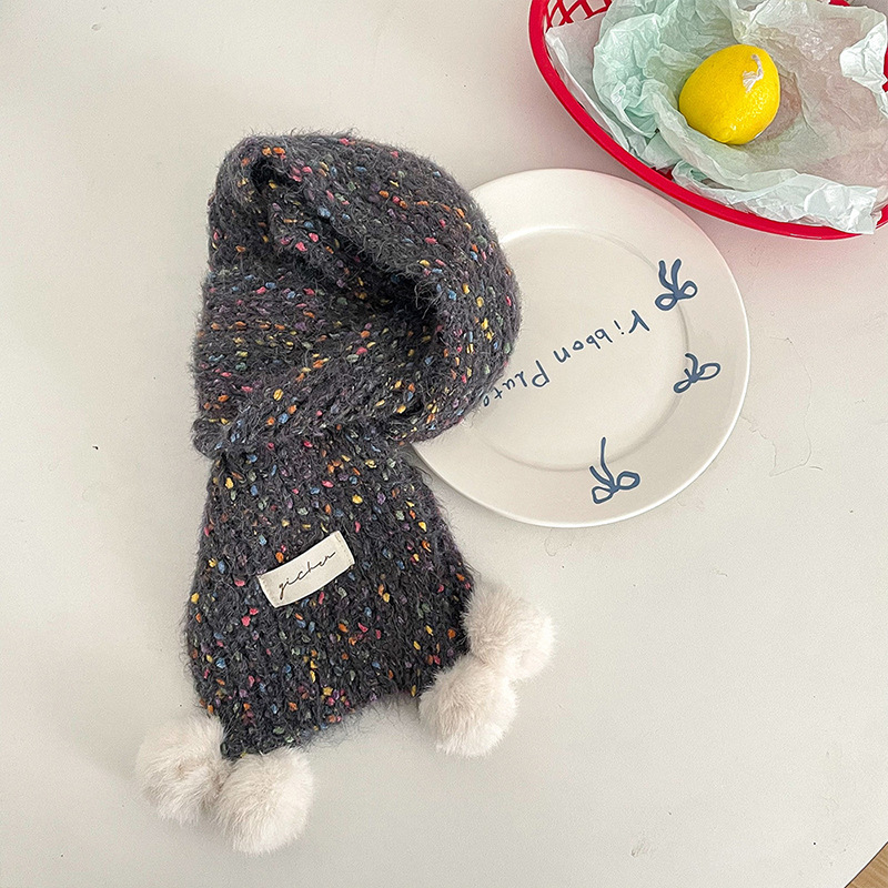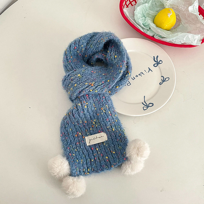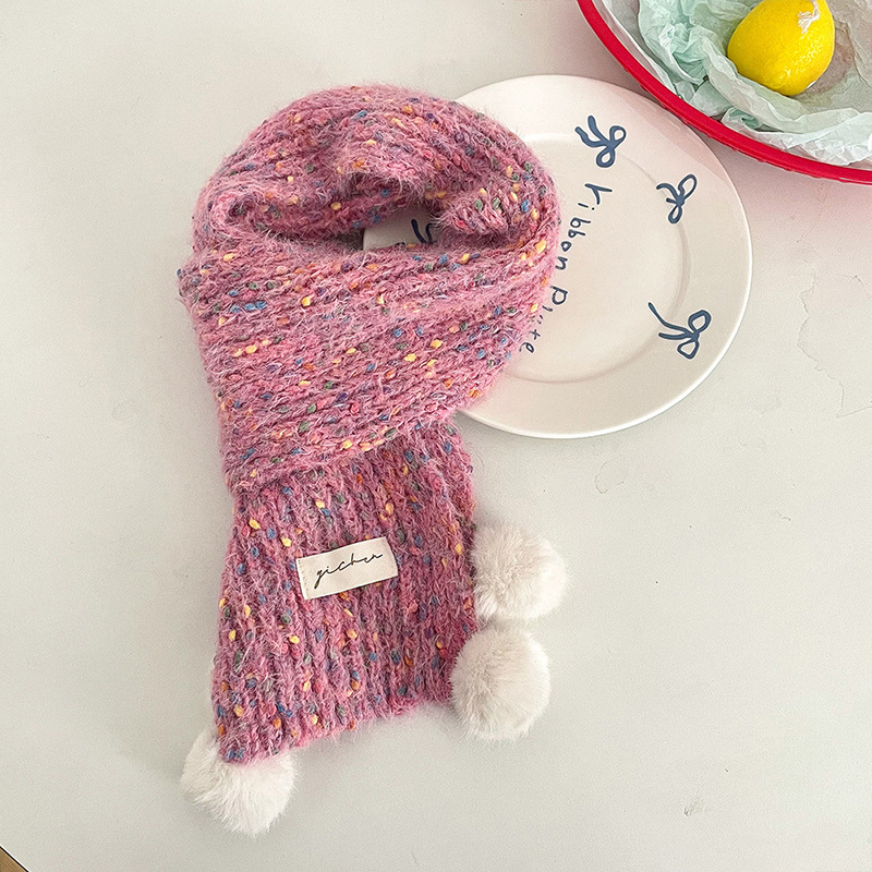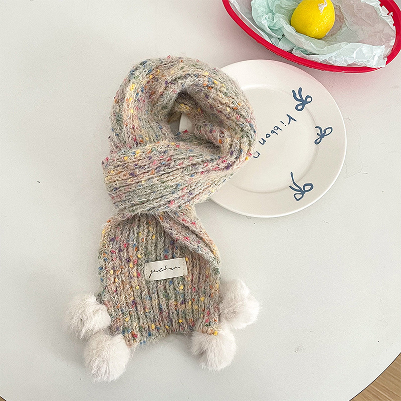 어린이 스카프, 귀여운 털볼과 컬러풀한 도트무늬 니트, 겨울철 남아 여아 아기 따뜻한 모직 스카프, 어린이용 일본 및 한국 스타일