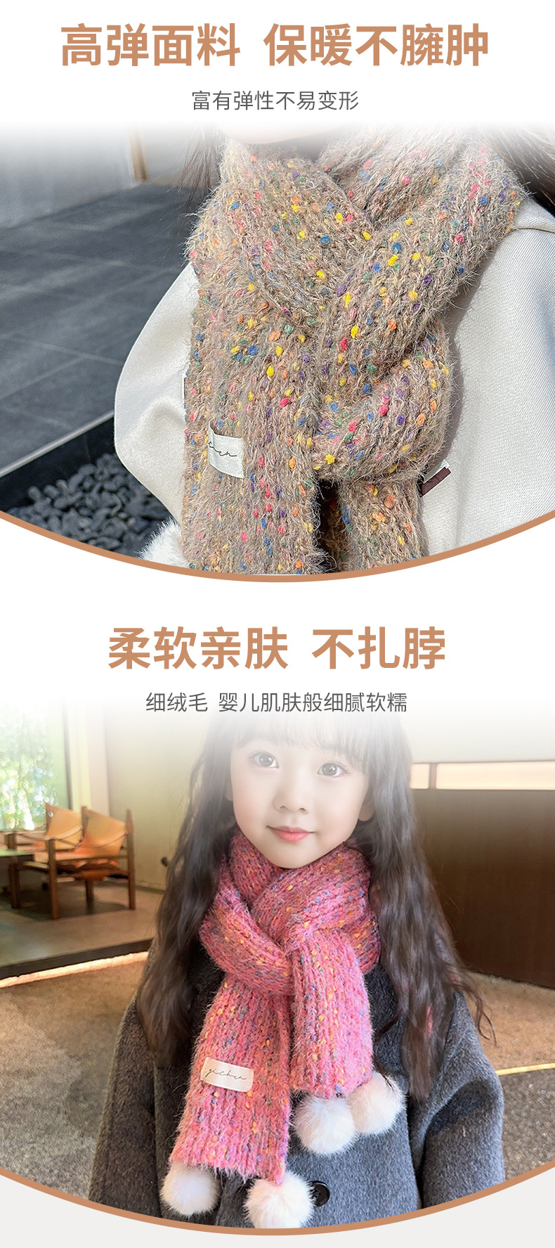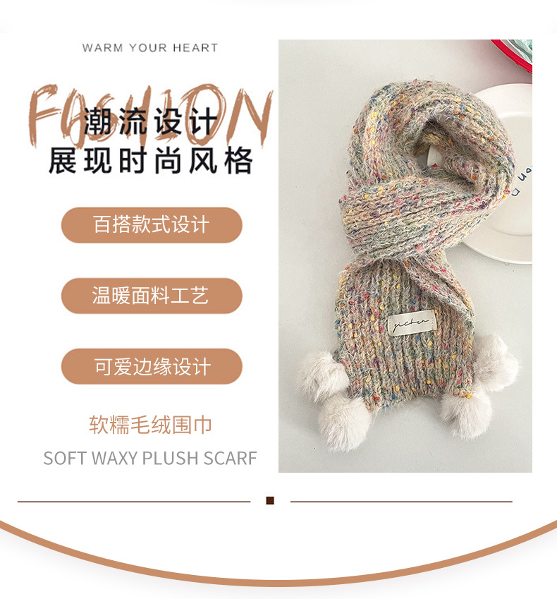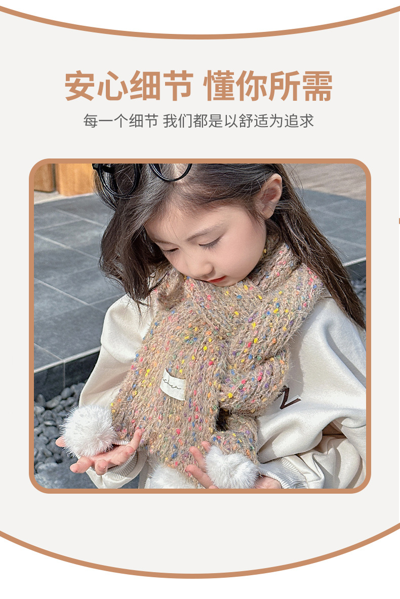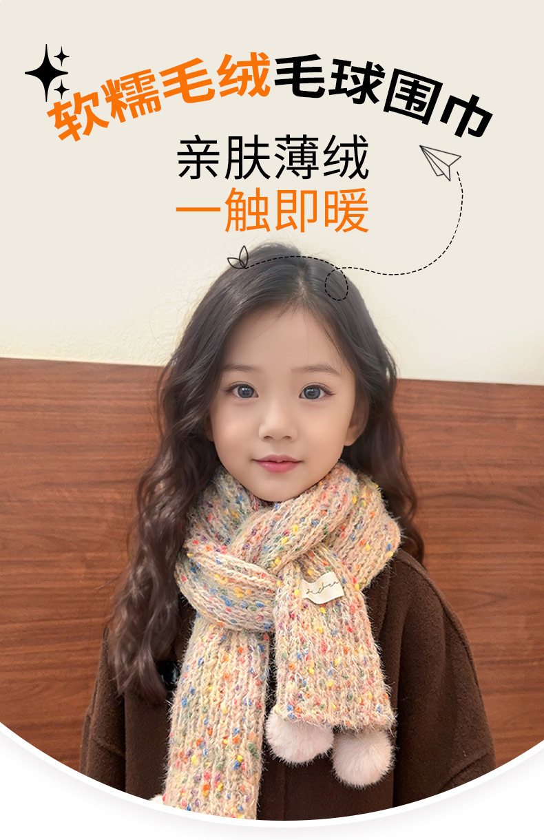 어린이 스카프, 귀여운 털볼과 컬러풀한 도트무늬 니트, 겨울철 남아 여아 아기 따뜻한 모직 스카프, 어린이용 일본 및 한국 스타일