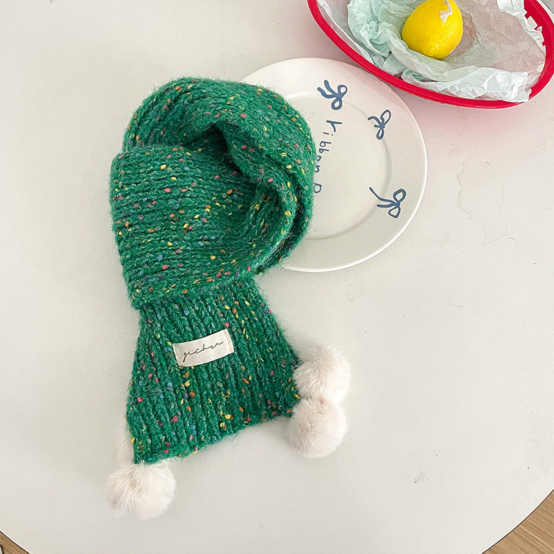어린이 스카프, 귀여운 털볼과 컬러풀한 도트무늬 니트, 겨울철 남아 여아 아기 따뜻한 모직 스카프, 어린이용 일본 및 한국 스타일스토어 가기