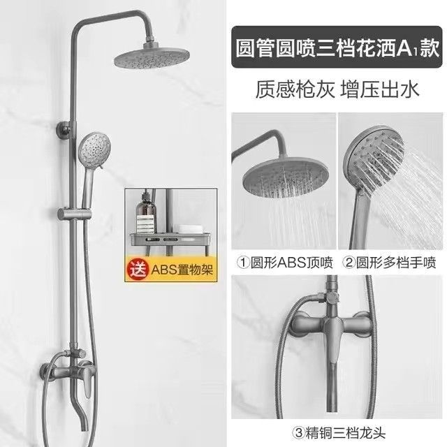 JlJON 정품 총 회색 욕실 화장실 샤워 모든 구리 가정용 뜨겁고 차가운 가압 비 샤워 세트스토어 가기