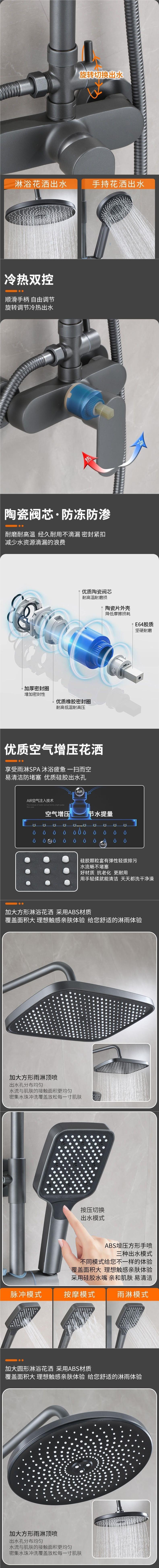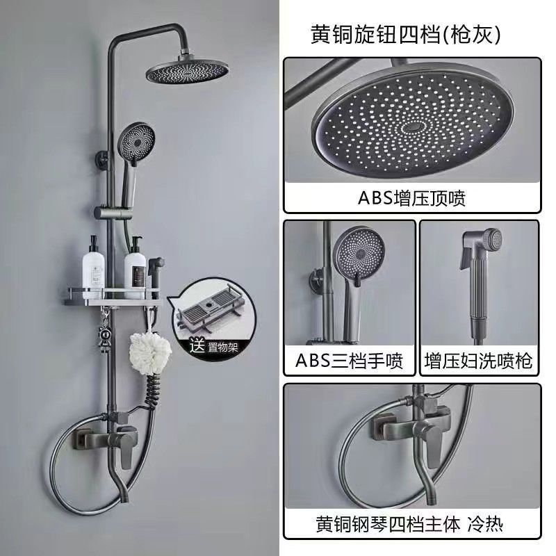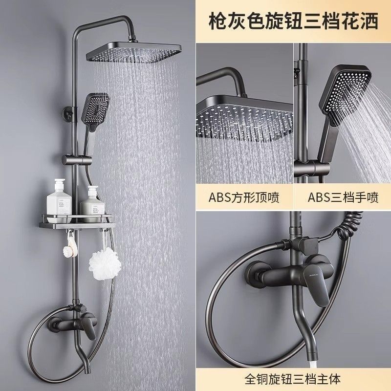JlJON 정품 총 회색 욕실 화장실 샤워 모든 구리 가정용 뜨겁고 차가운 가압 비 샤워 세트
