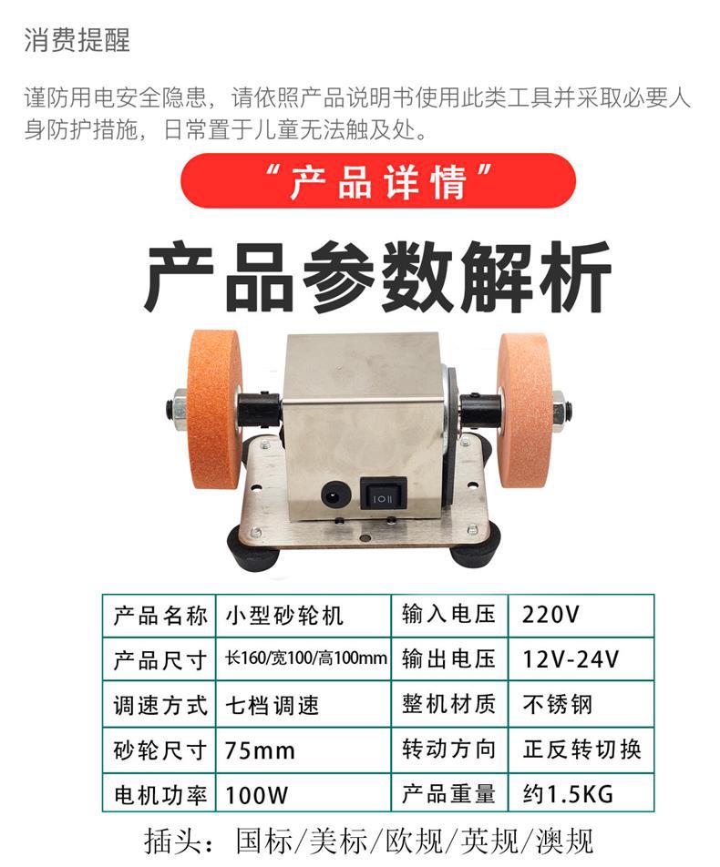 • 이중 연삭 휠 + 연마 세트(무단계 속도 조절 모델)