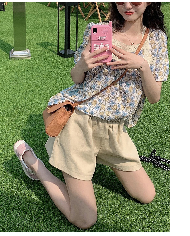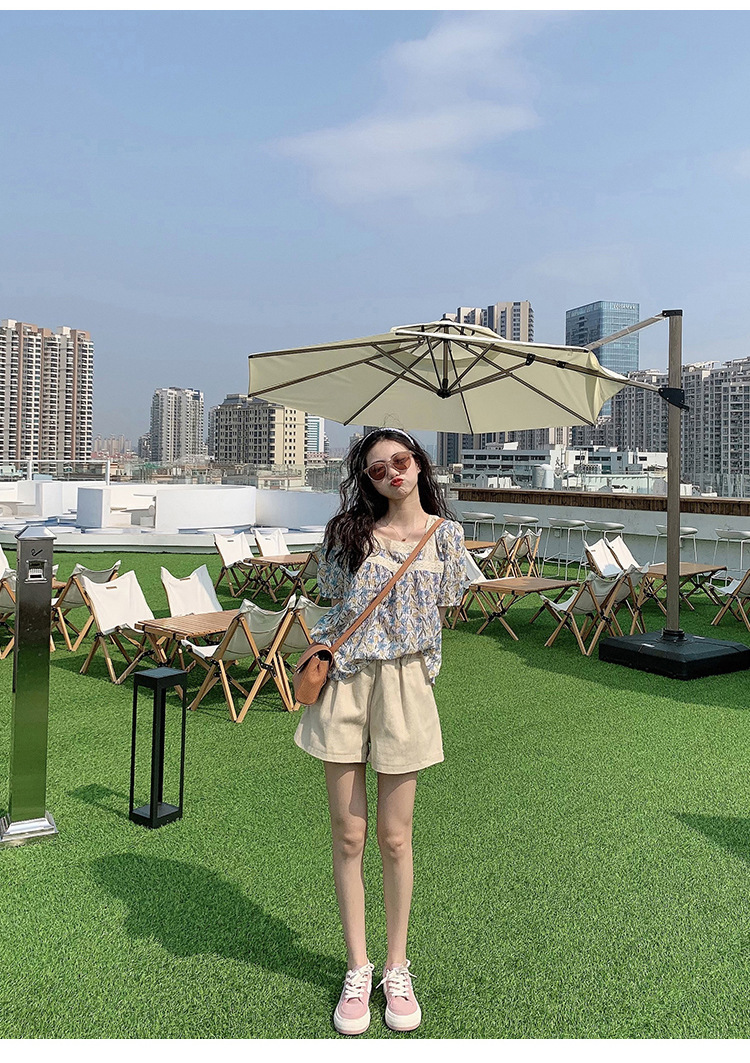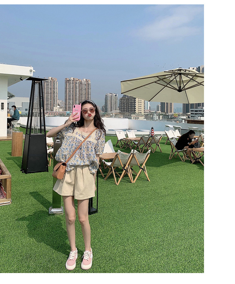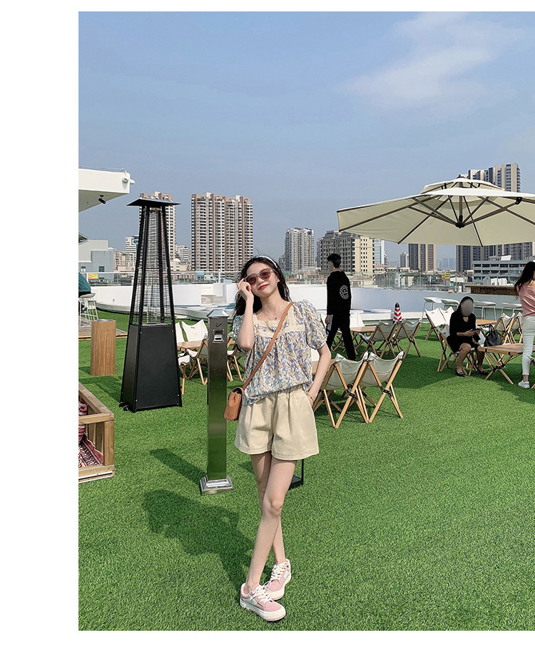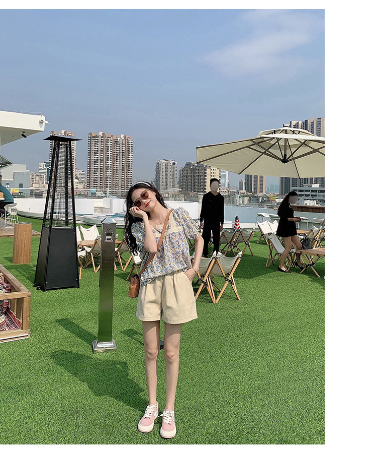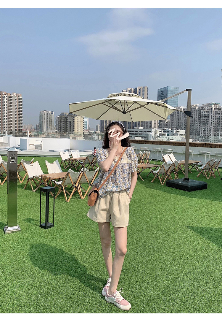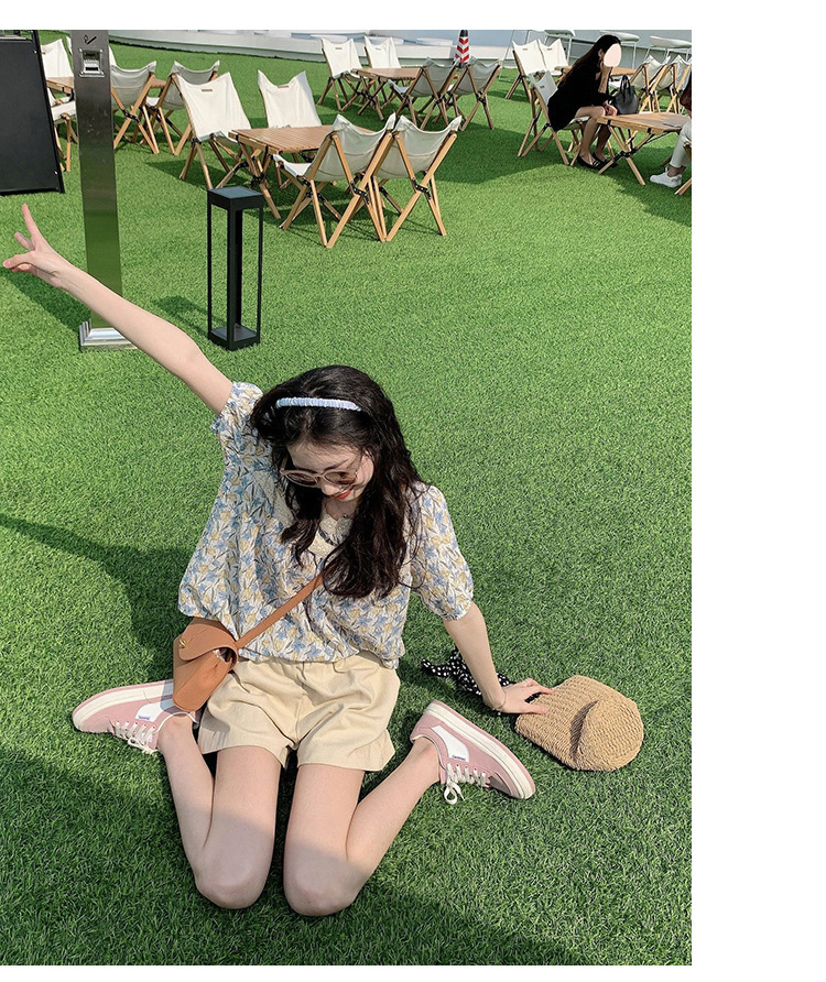 스퀘어 칼라 플로랄 탑 여성 디자인 센스 니쉬 셔츠 2023 여름 짧은 소매 한국 스타일 쉬폰 인형 셔츠스토어 가기