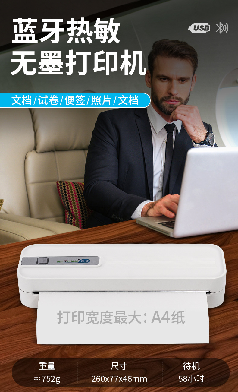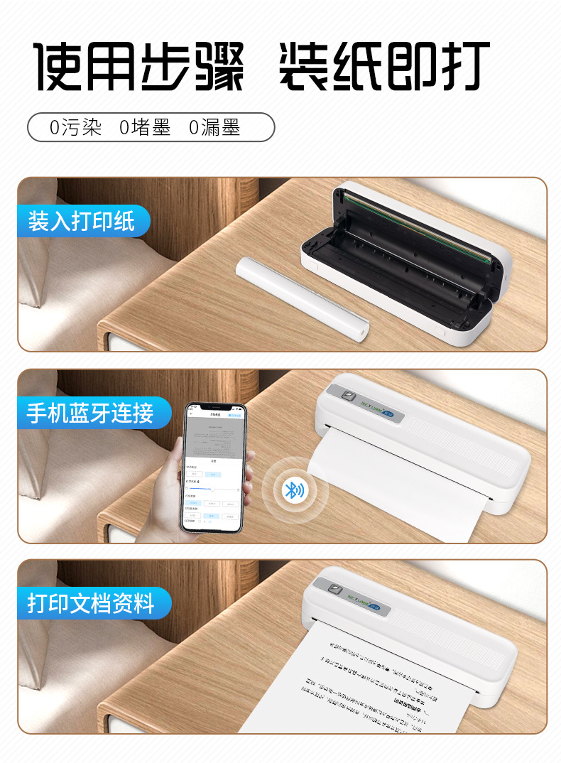 A4 가정용 학생 프린터 휴대용 블루투스 인쇄 숙제 열전사 무잉크 가정용 스마트 휴대폰 연결 문제 기계