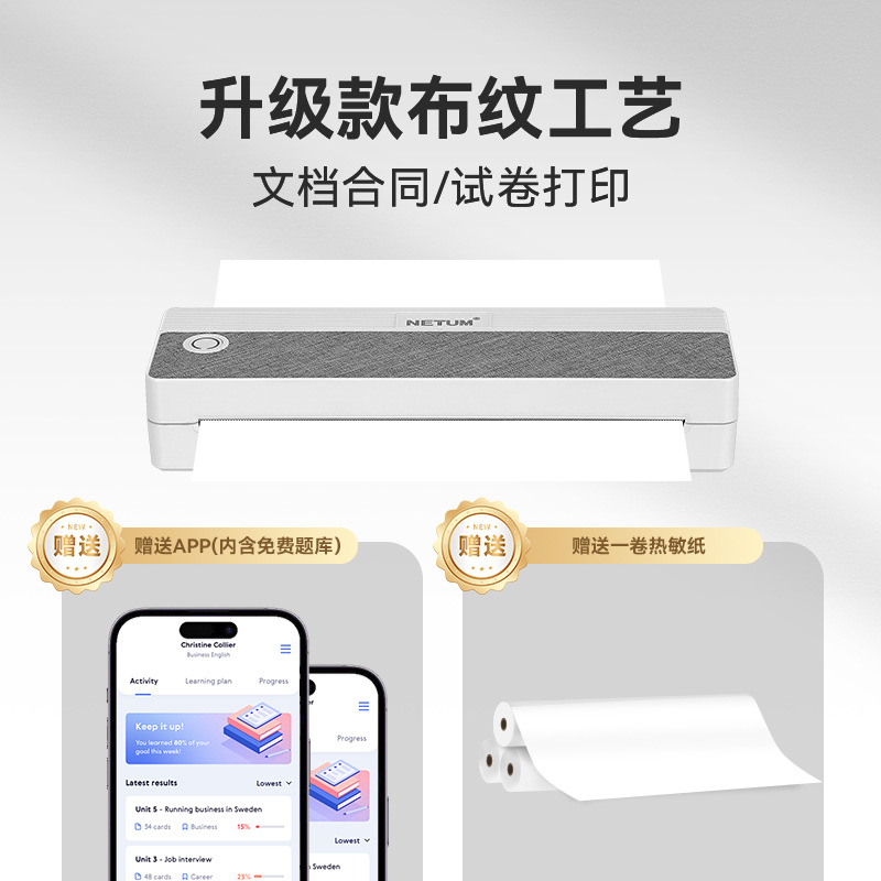 • XL-A408 휴대용 A4 감열식 프린터(무료 용지 1롤 + 무료 APP 문제 은행)