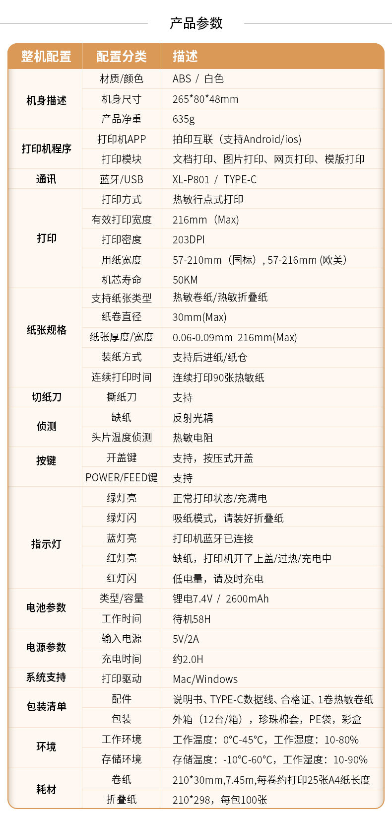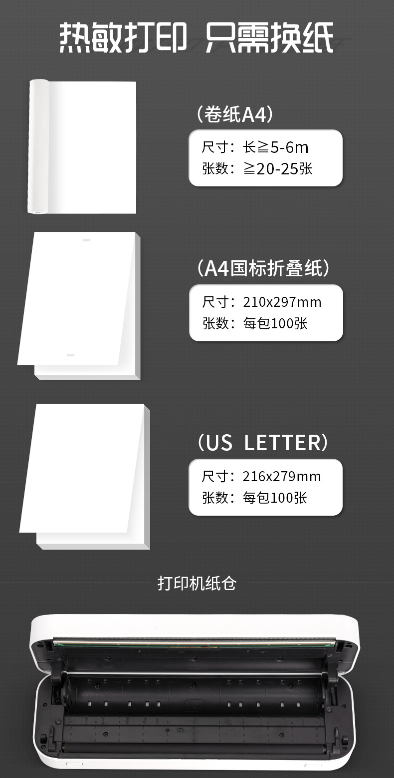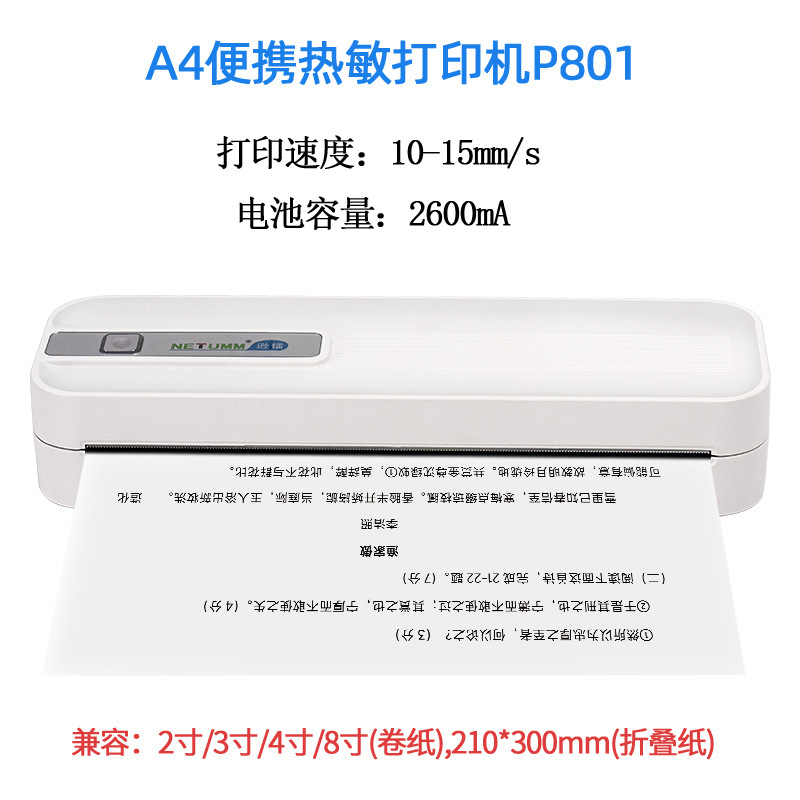 • XL-P801 휴대용 A4 감열식 프린터(종이 1롤 + 무료 APP 문제 은행)