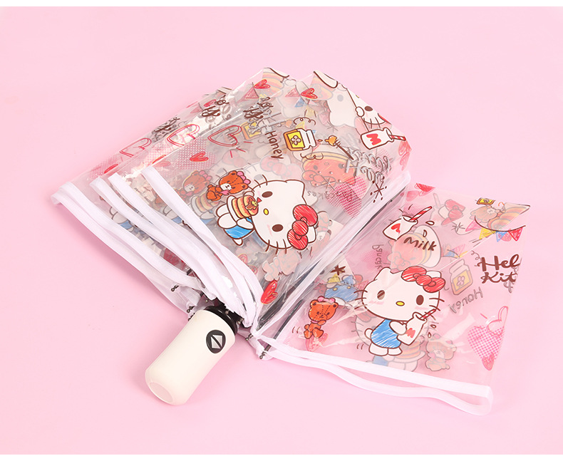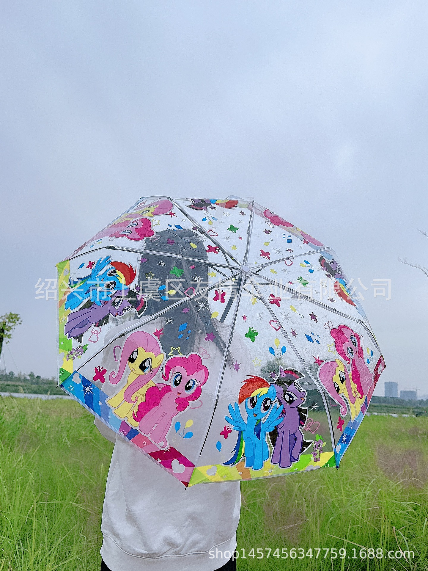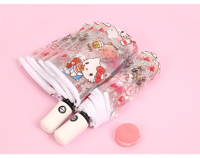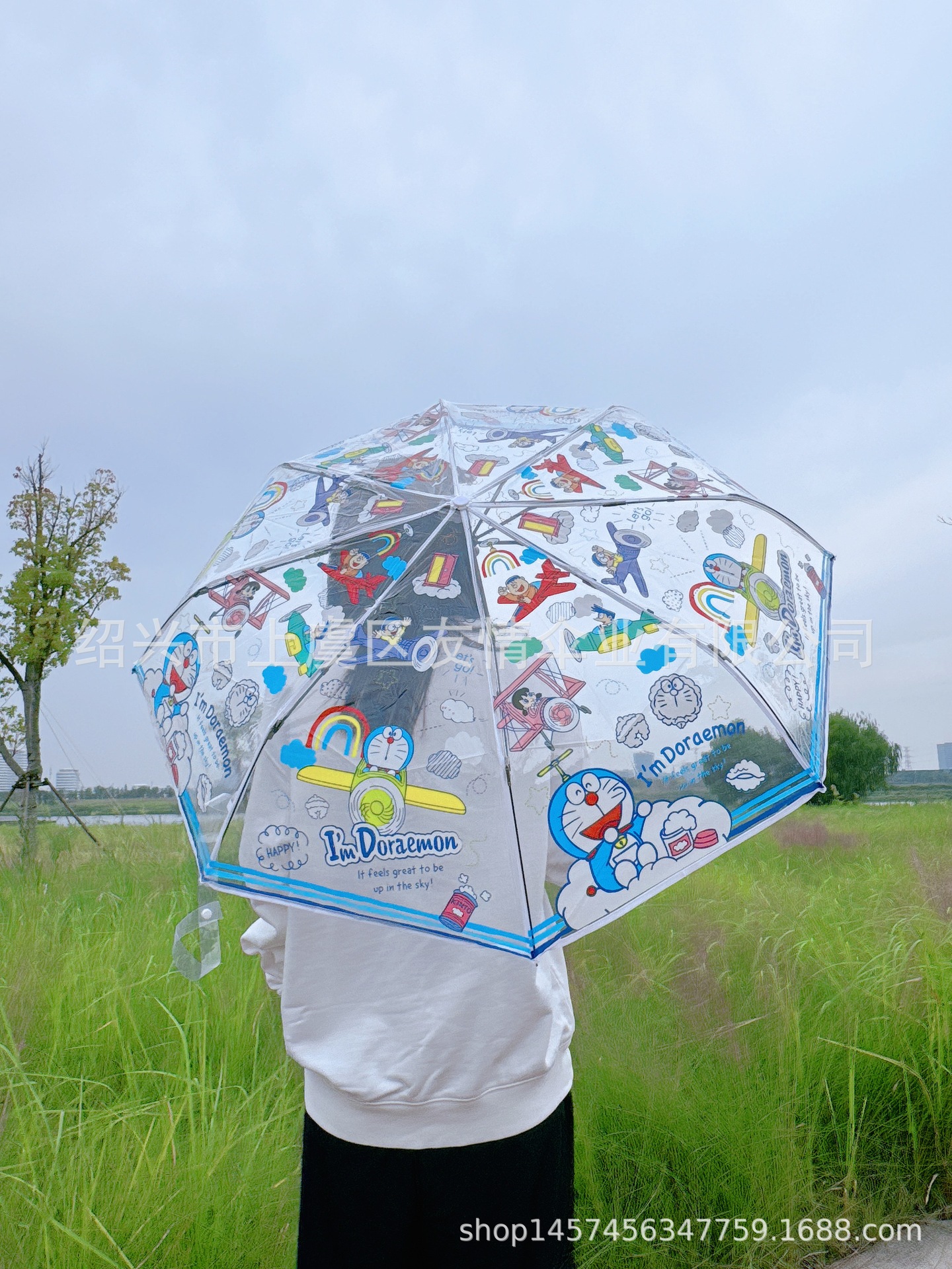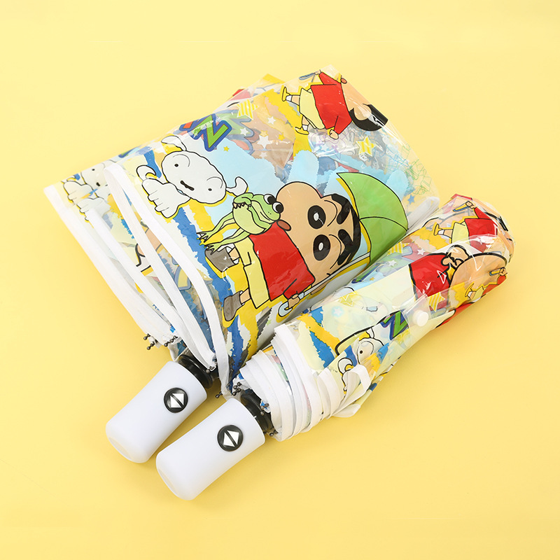 크레용 신 새로운 투명 우산 자동 두꺼운 인터넷 인기 접는 우산 여성 만화 귀여운 여신 어린이 학생 우산