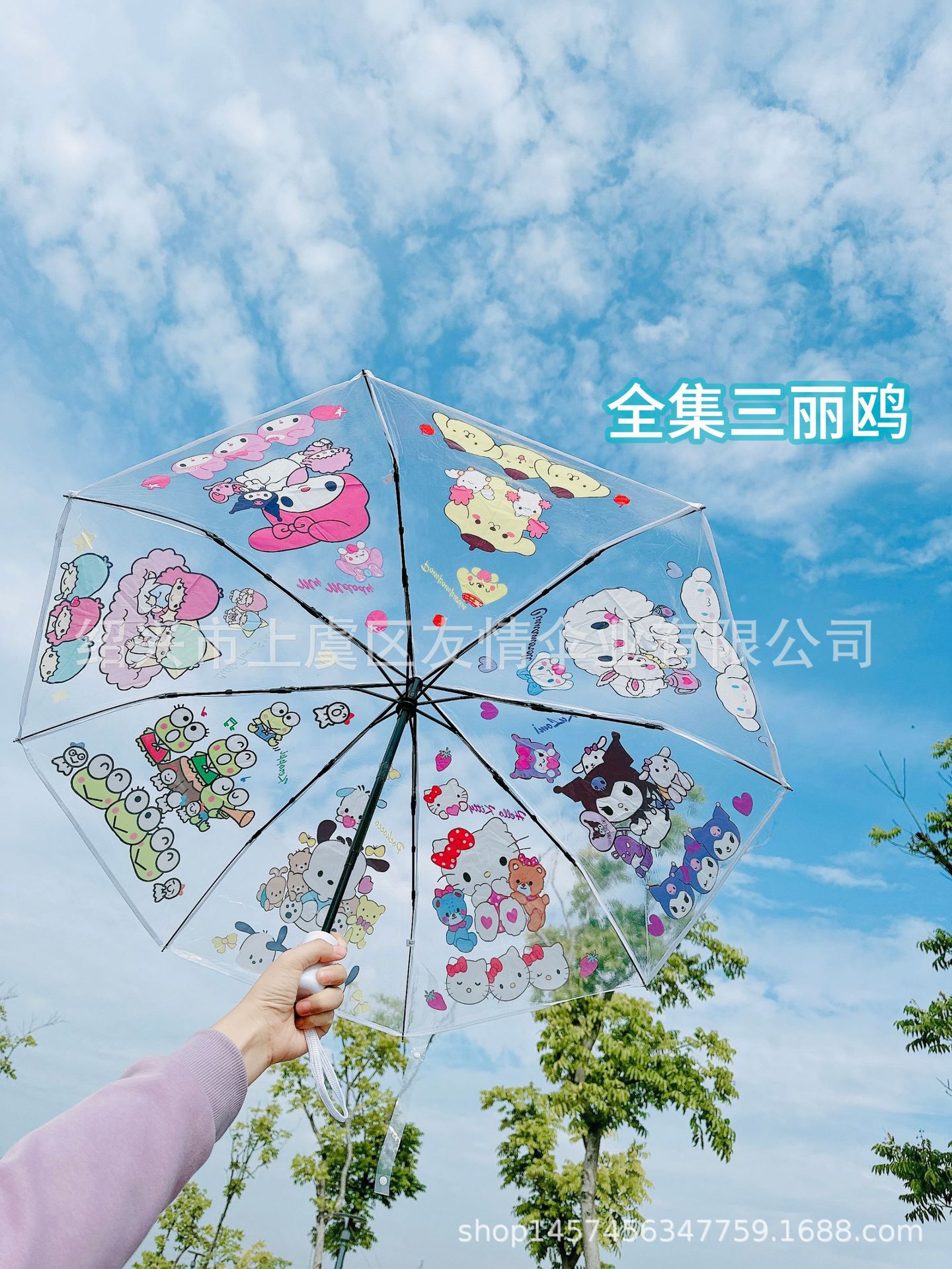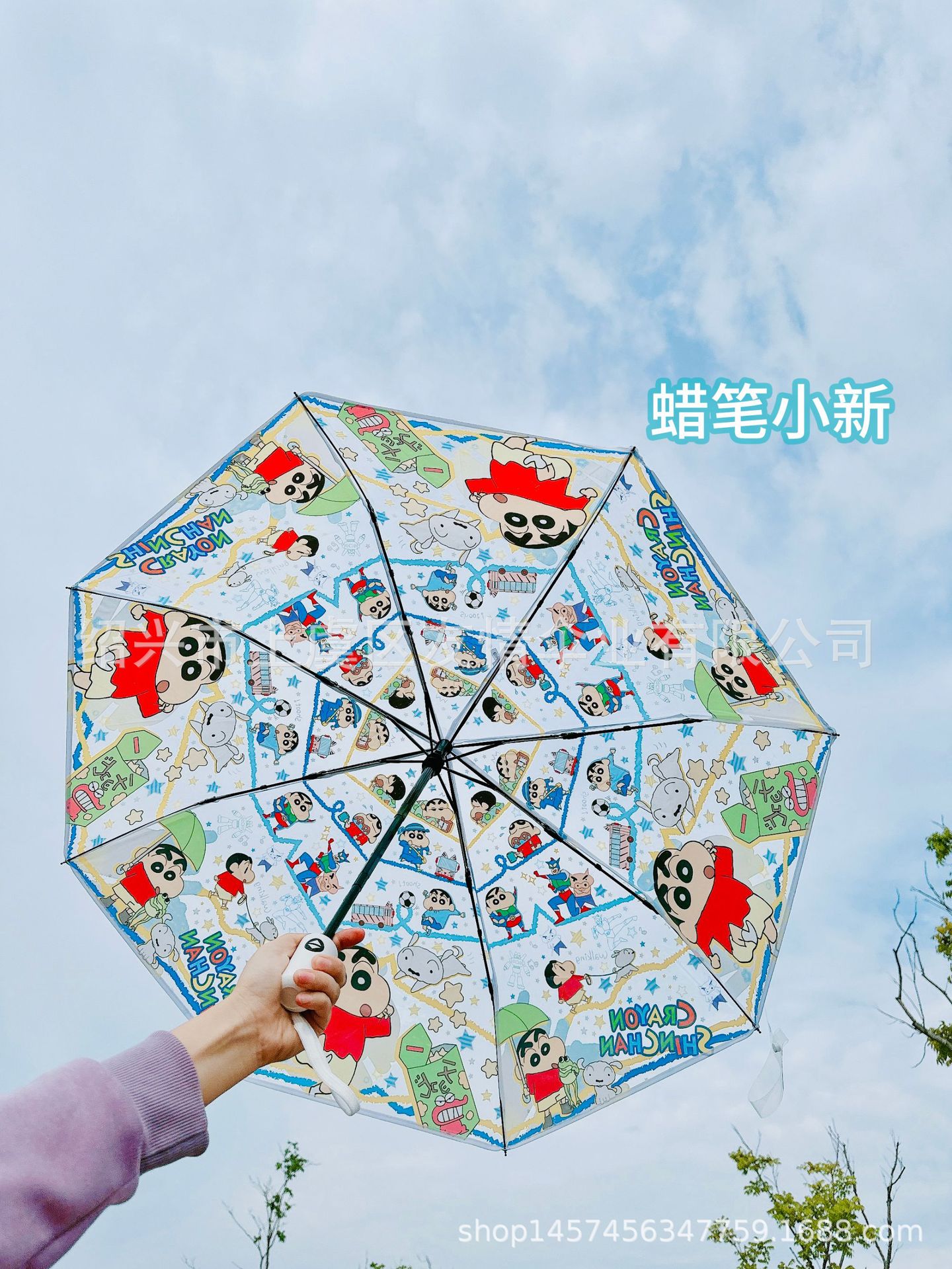 크레용 신 새로운 투명 우산 자동 두꺼운 인터넷 인기 접는 우산 여성 만화 귀여운 여신 어린이 학생 우산스토어 가기