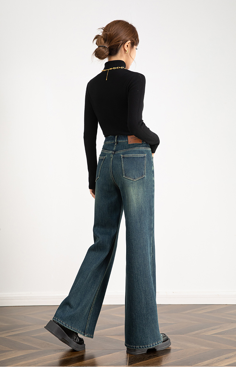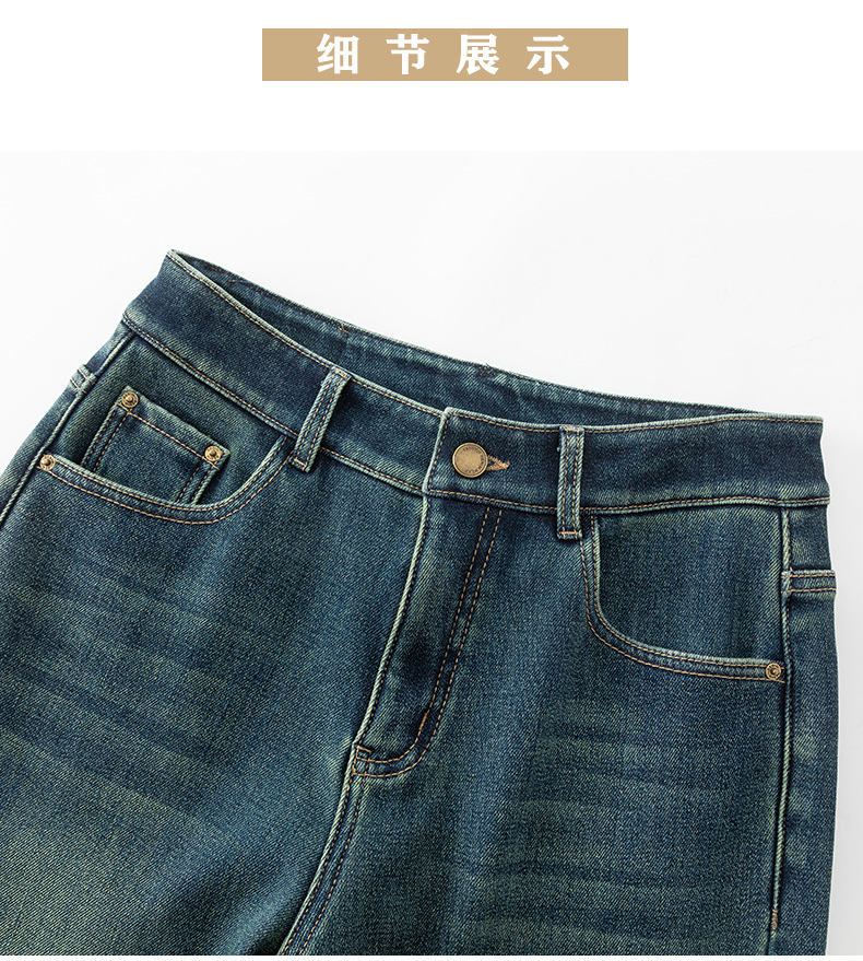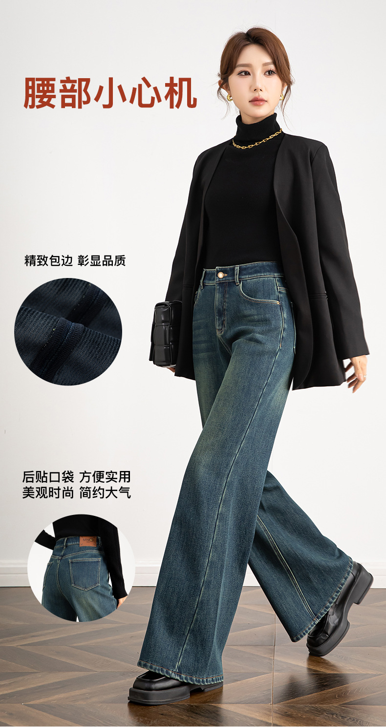 여성용 레트로 벨벳 두꺼운 플레어 팬츠 2025 겨울 하이웨이스트 4방향 스트레치 데님 플레어 팬츠 8119H스토어 가기
