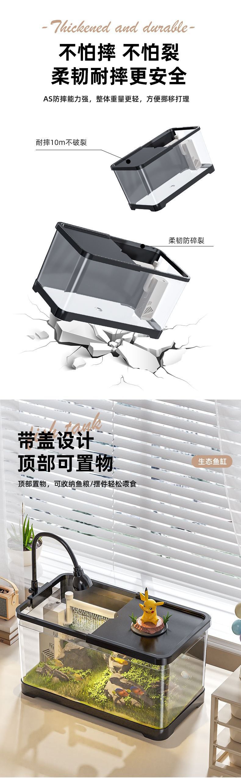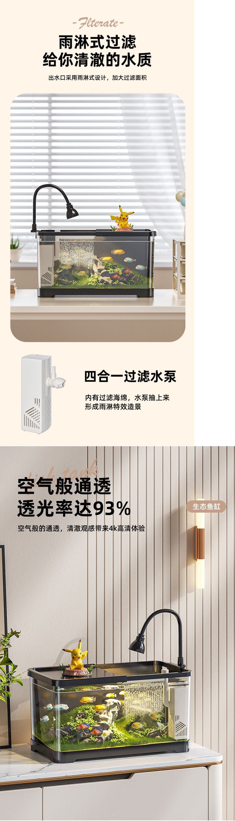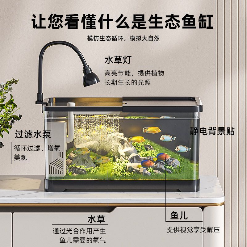 생태 거실 산소 무료 금붕어 탱크 투명 작은 데스크탑 탱크 물고기 탱크 수족관 가정용 플라스틱 물 필터