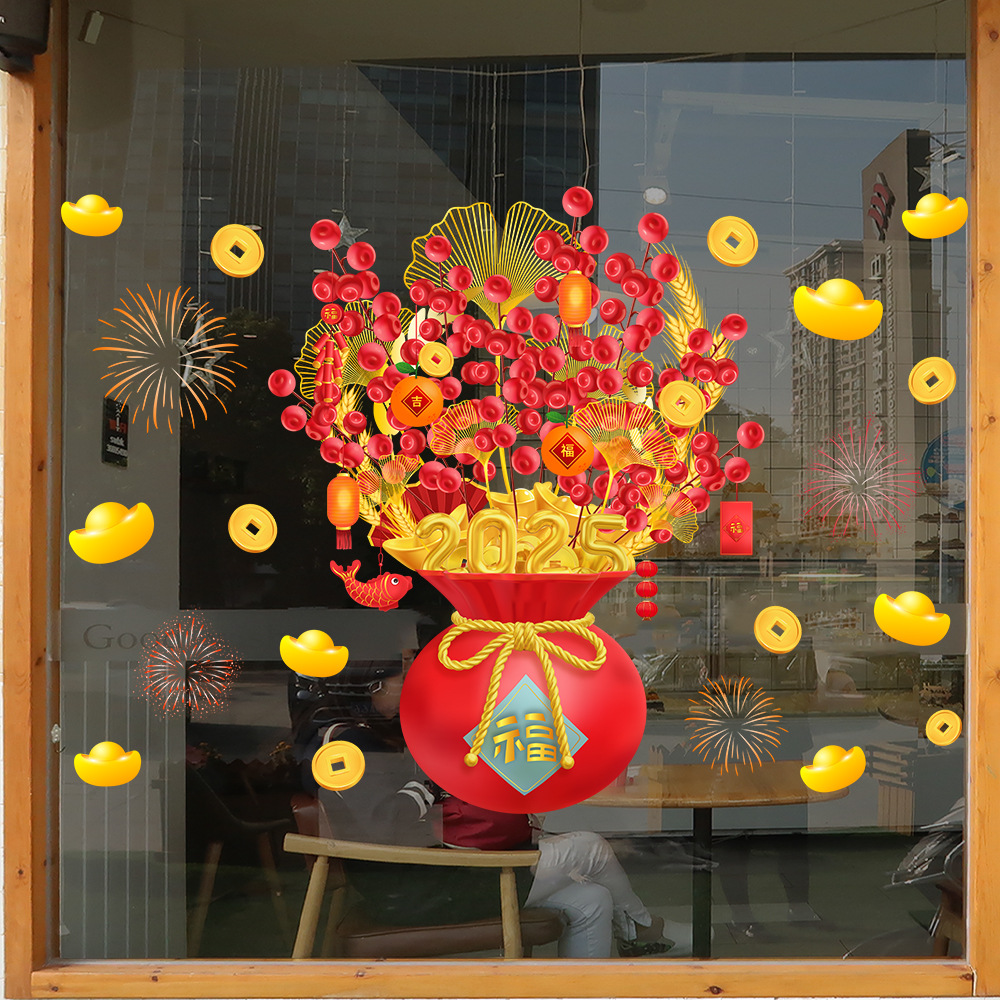 Yiyao JD6916 새해 루시퍼 포춘 나무 창 스티커 봄 발코니 유리 방수 이동식 정전기 스티커