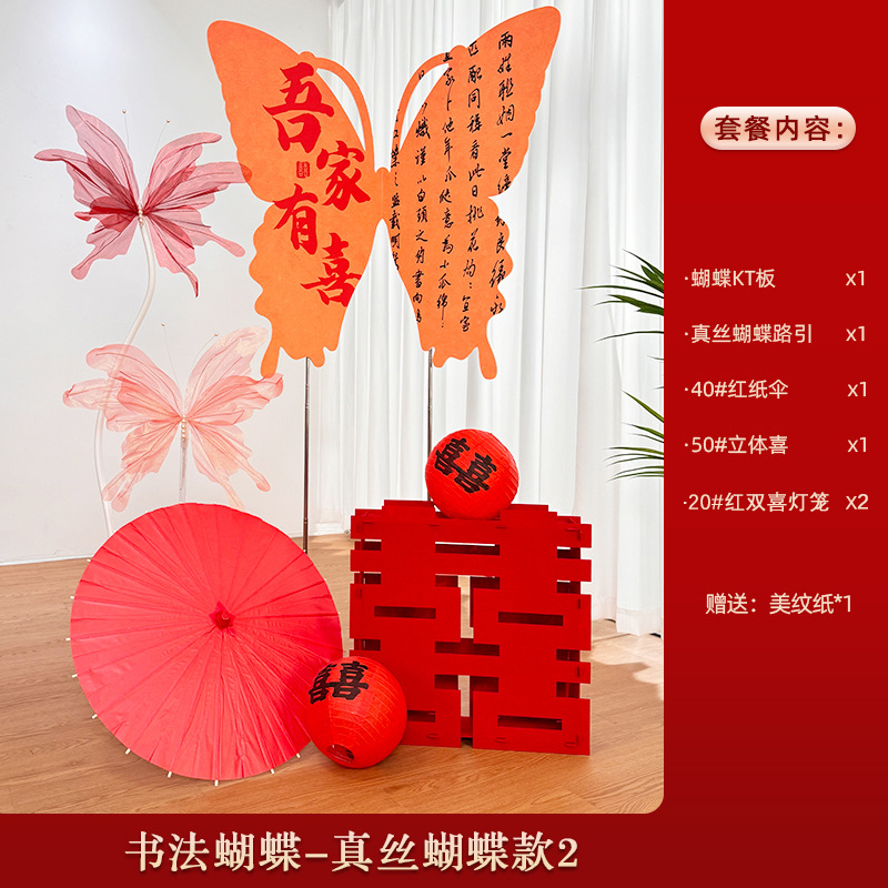 웨딩 장식 대형 Kt 보드 서예 나비 세트 웨딩 룸 정렬 남성과 여성을위한 웨딩 모닝 로브 사진 배경 벽스토어 가기
