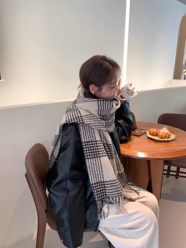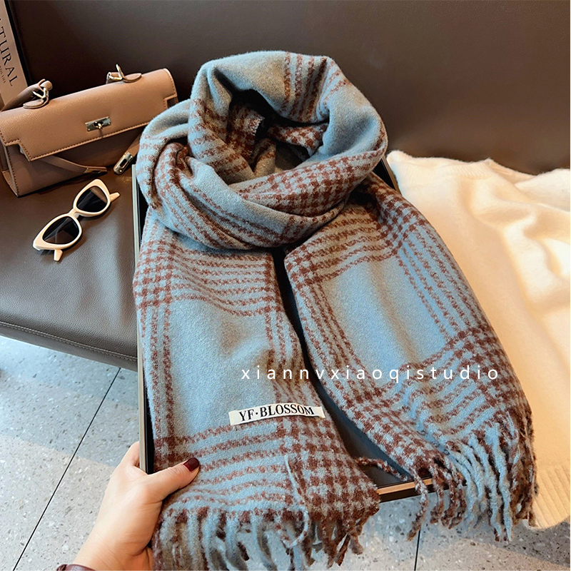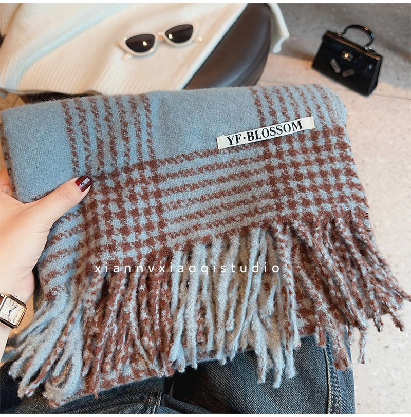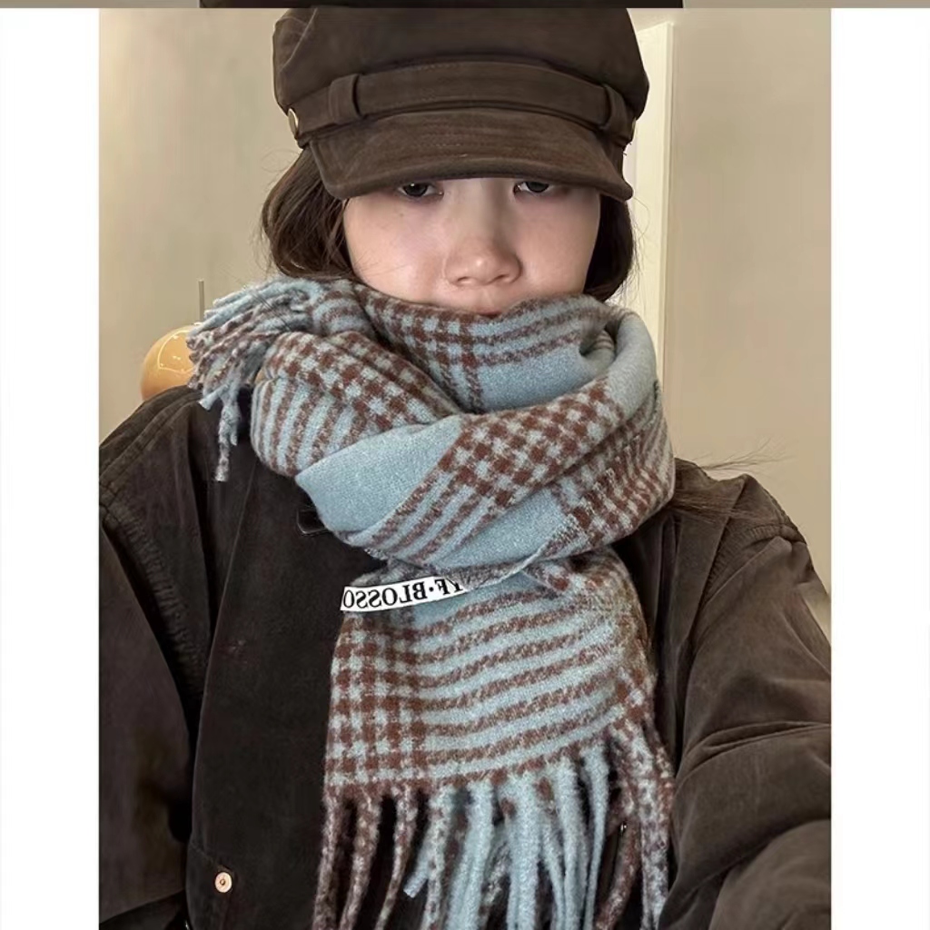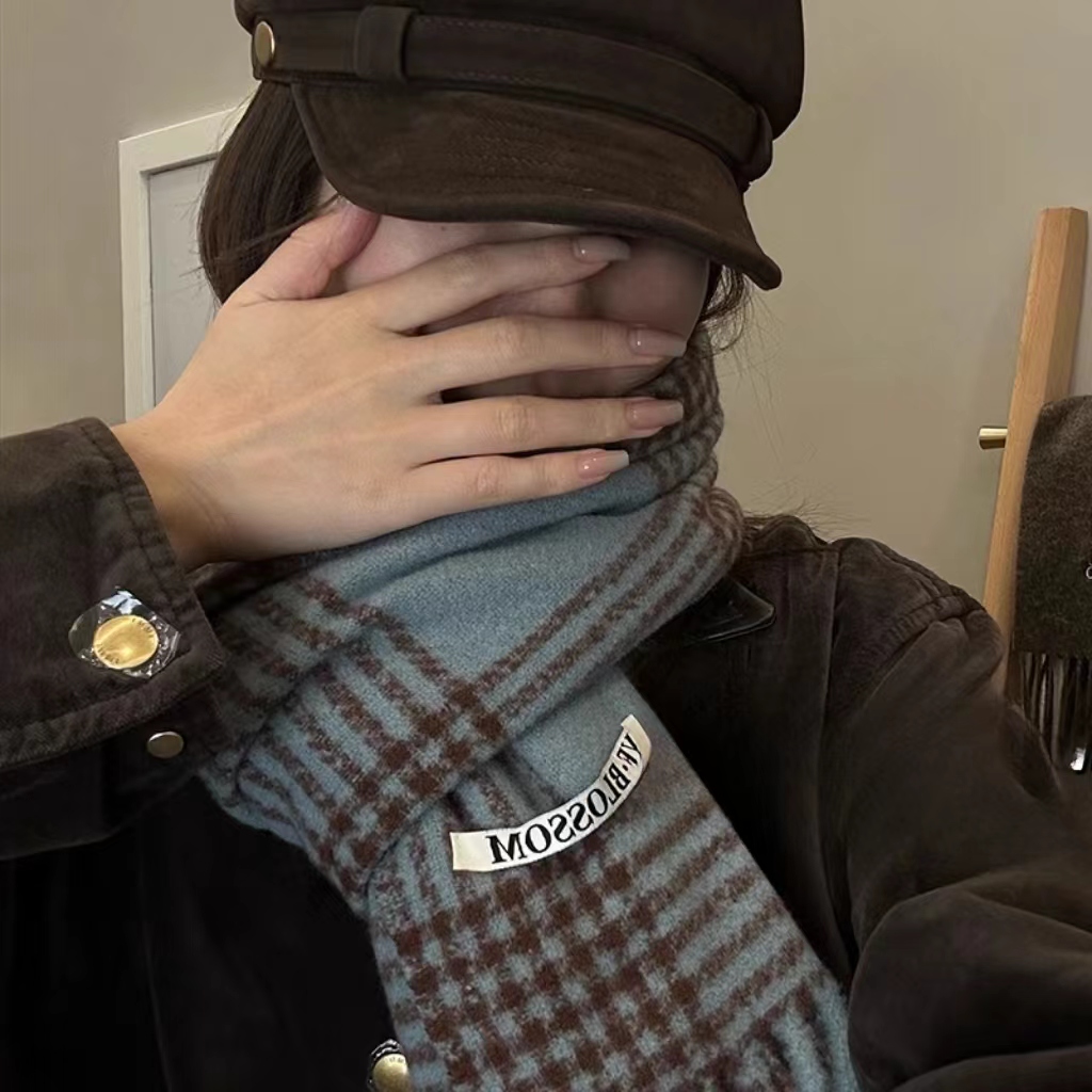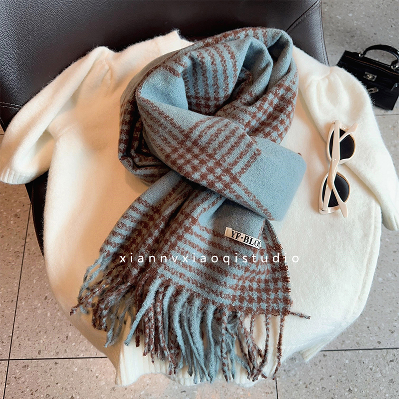 바다 소금 블루 영국 격자 무늬 스카프 여자 한국식 분위기 겨울 새 올매치 화이트 따뜻한 목도리 커플 스카프스토어 가기