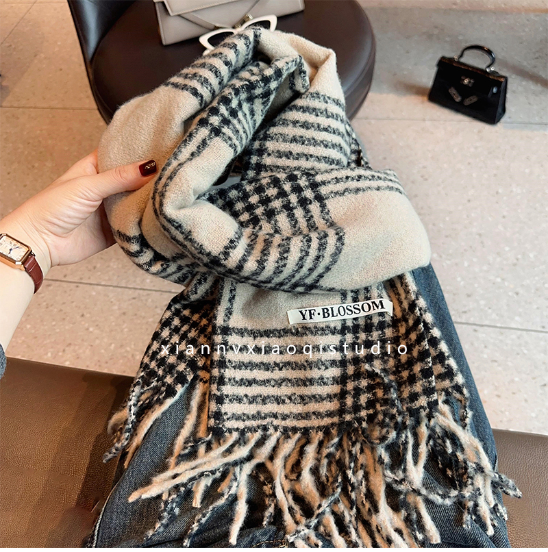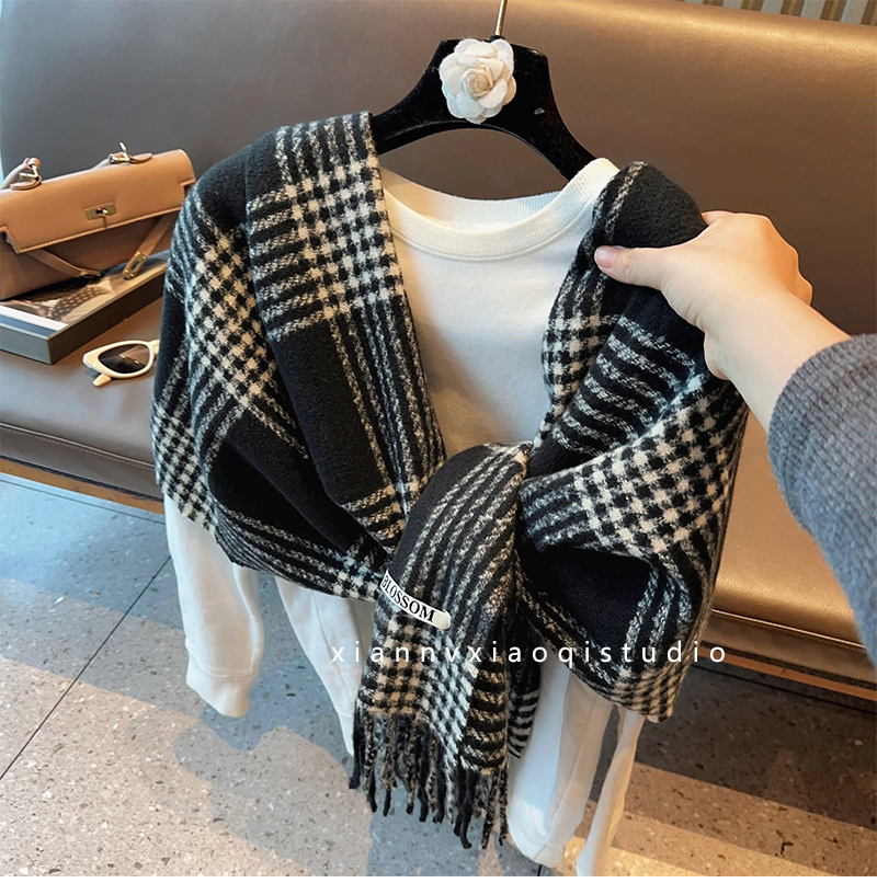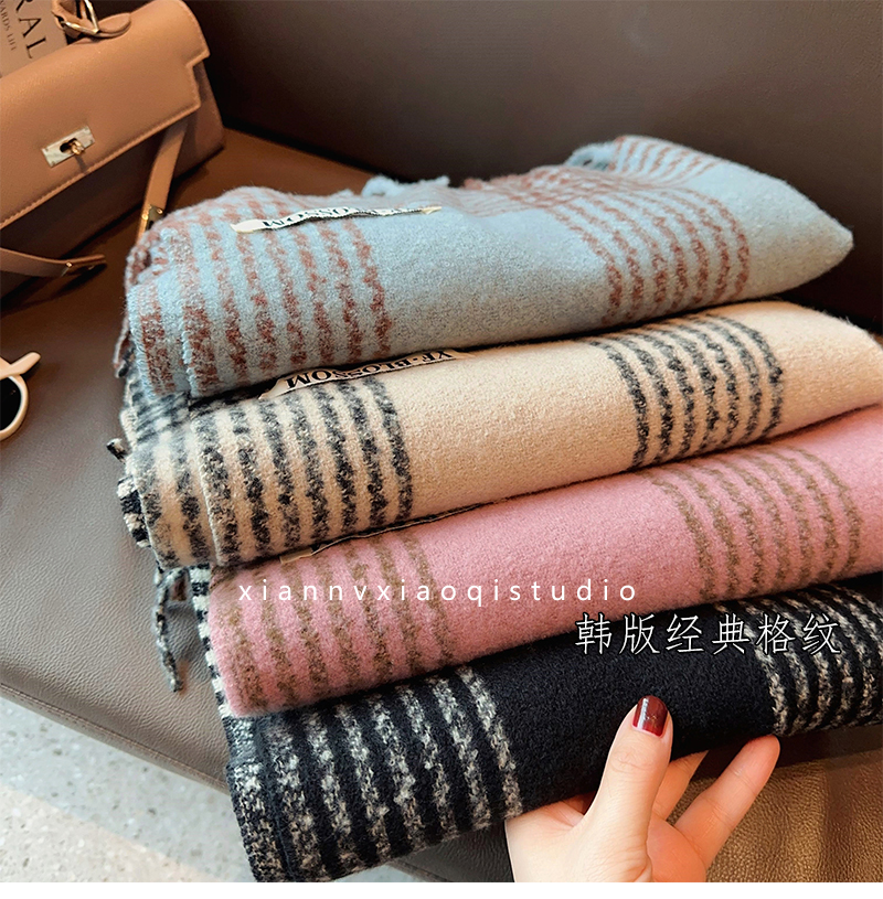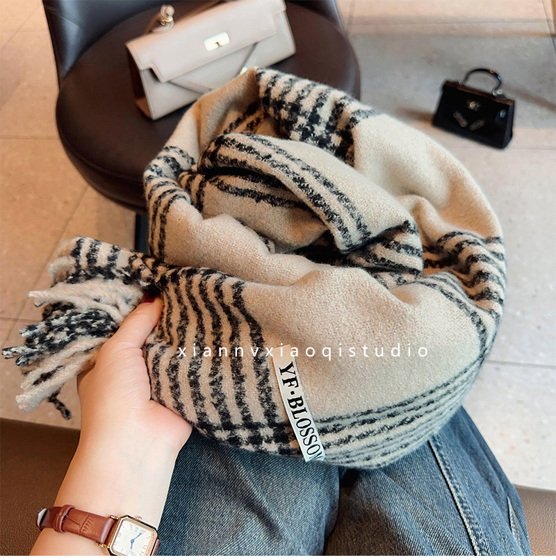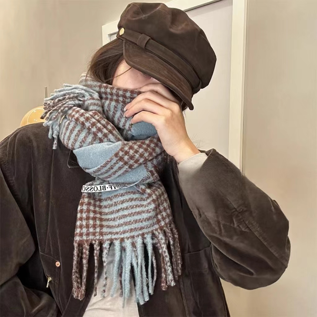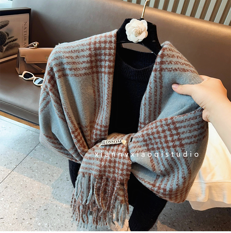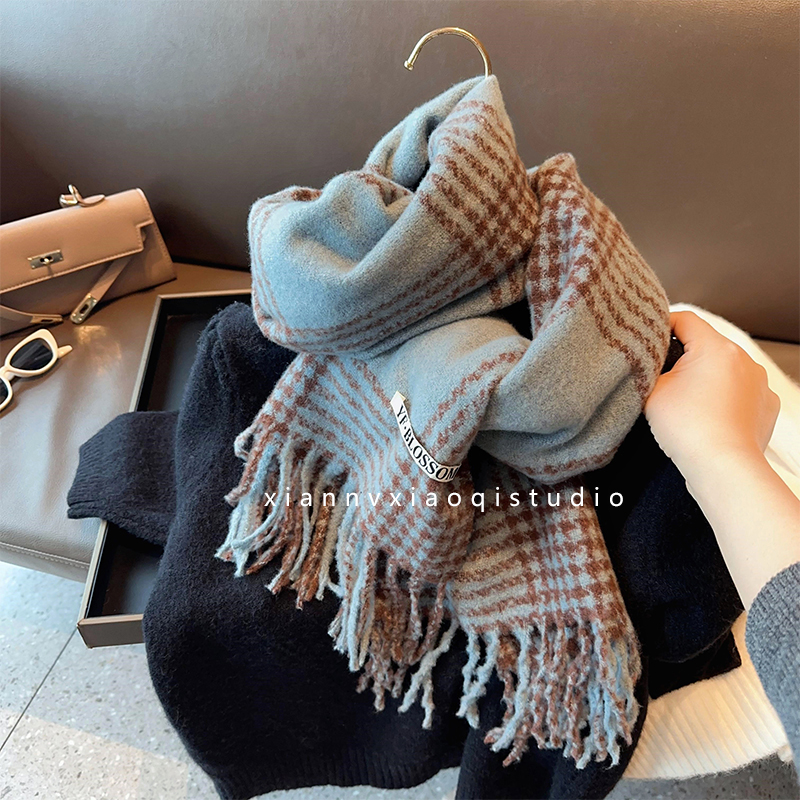 바다 소금 블루 영국 격자 무늬 스카프 여자 한국식 분위기 겨울 새 올매치 화이트 따뜻한 목도리 커플 스카프스토어 가기