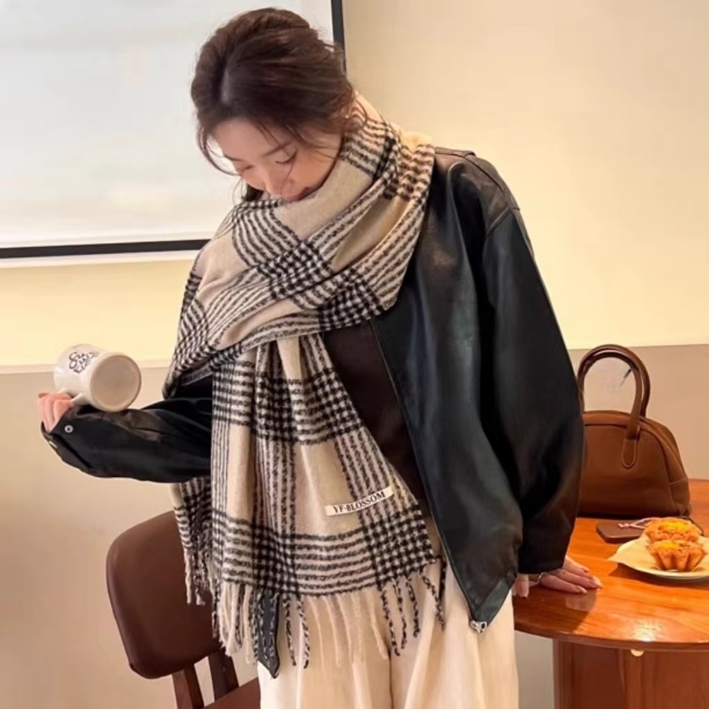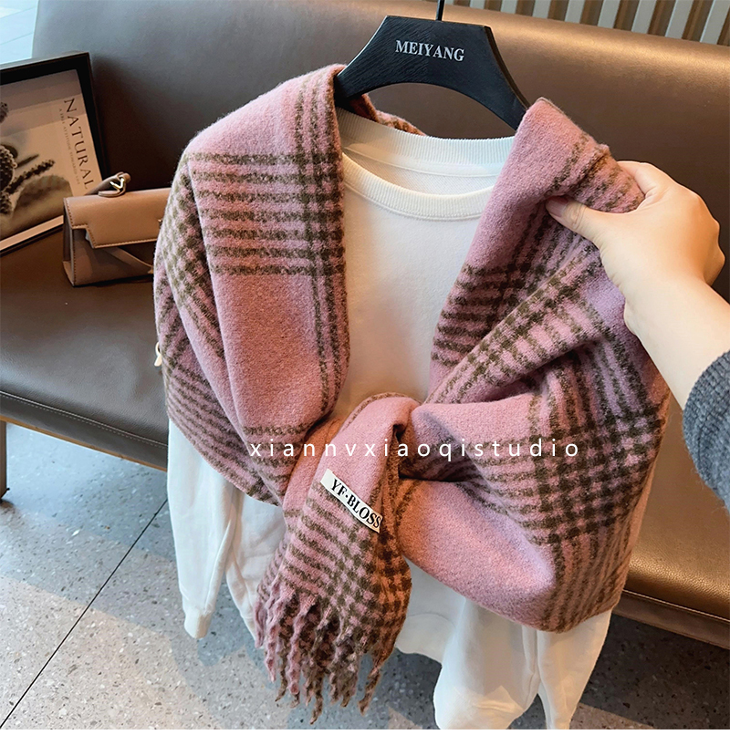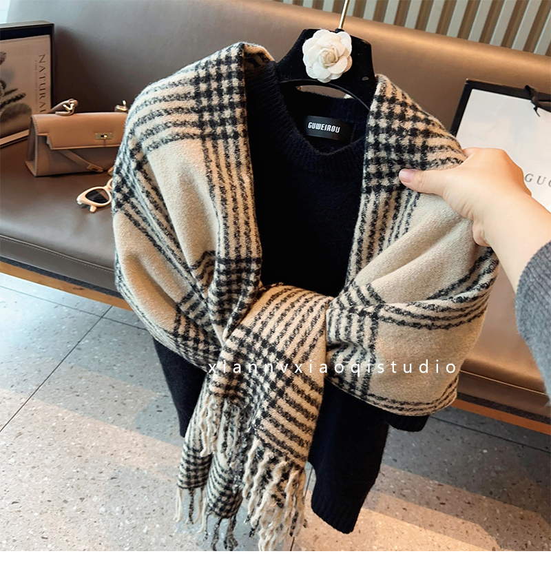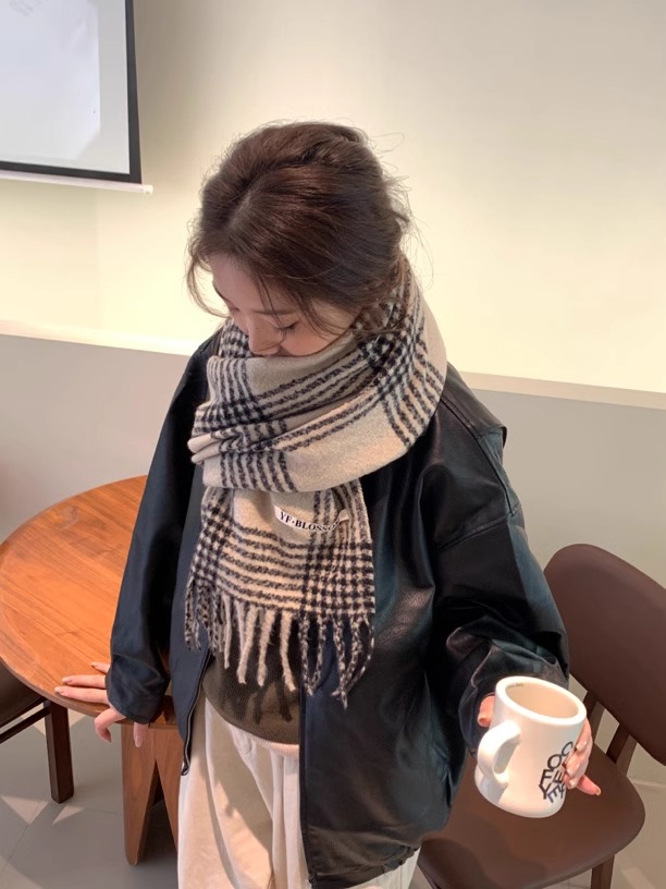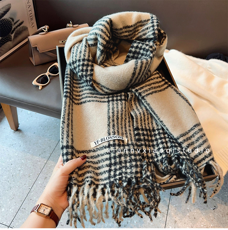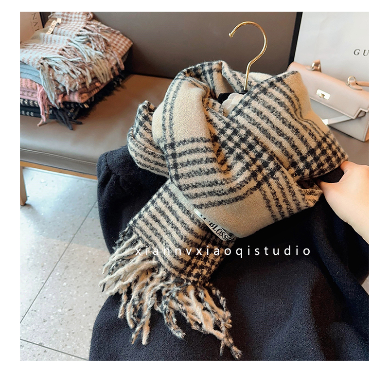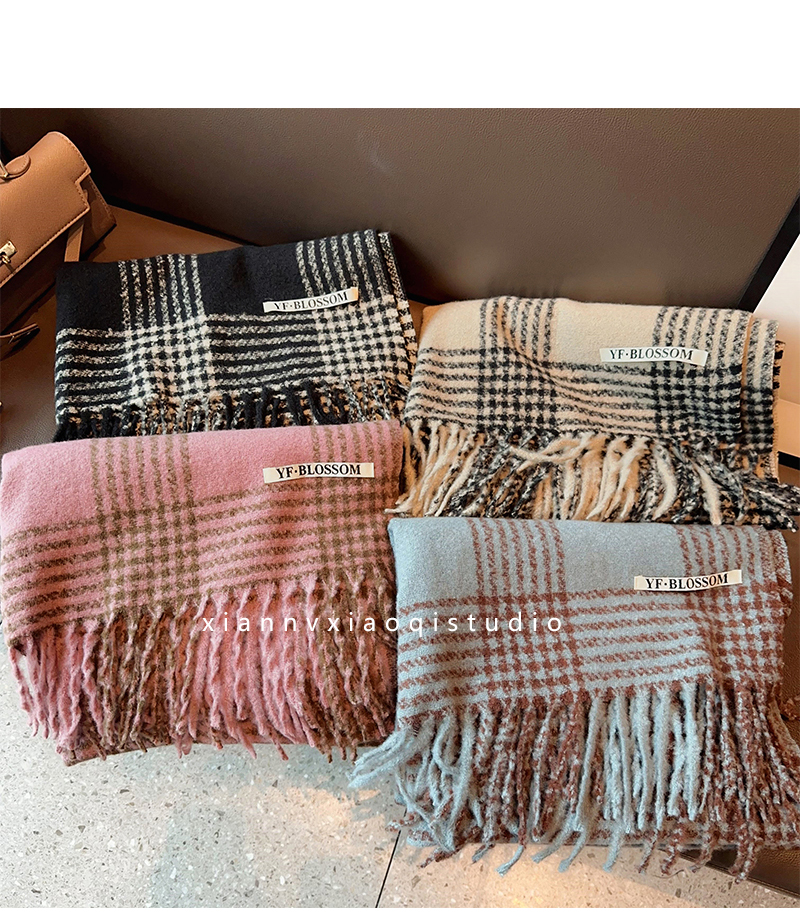 바다 소금 블루 영국 격자 무늬 스카프 여자 한국식 분위기 겨울 새 올매치 화이트 따뜻한 목도리 커플 스카프스토어 가기