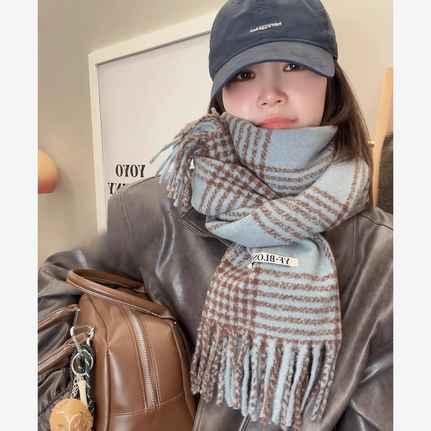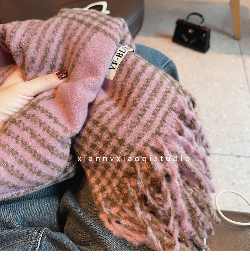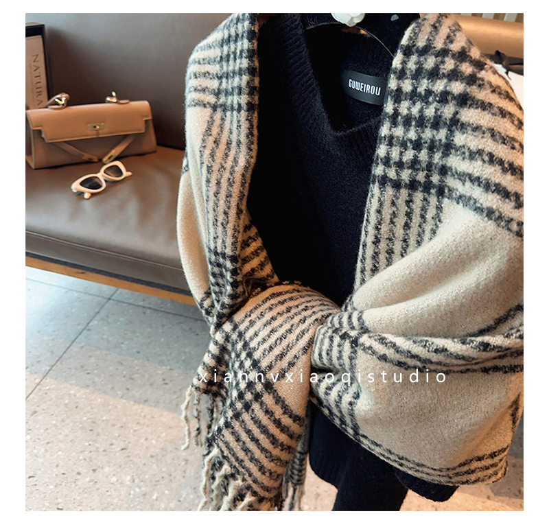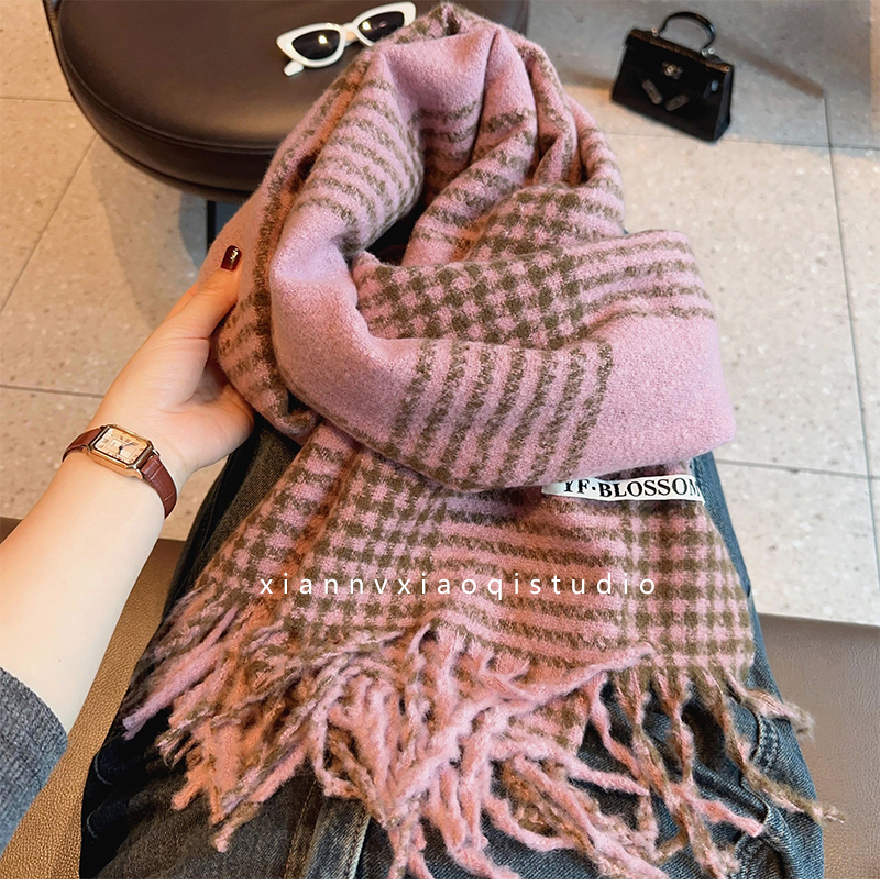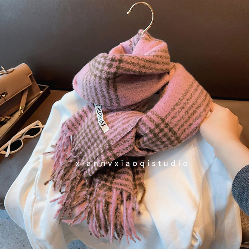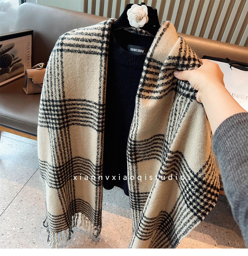 바다 소금 블루 영국 격자 무늬 스카프 여자 한국식 분위기 겨울 새 올매치 화이트 따뜻한 목도리 커플 스카프스토어 가기