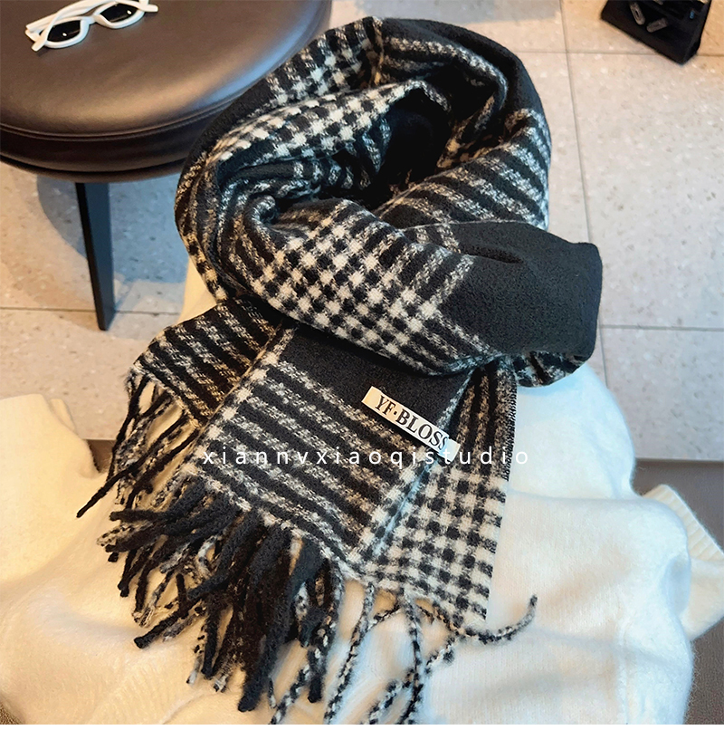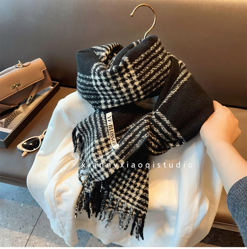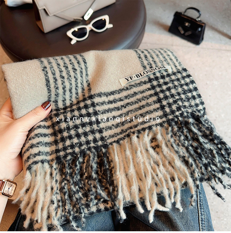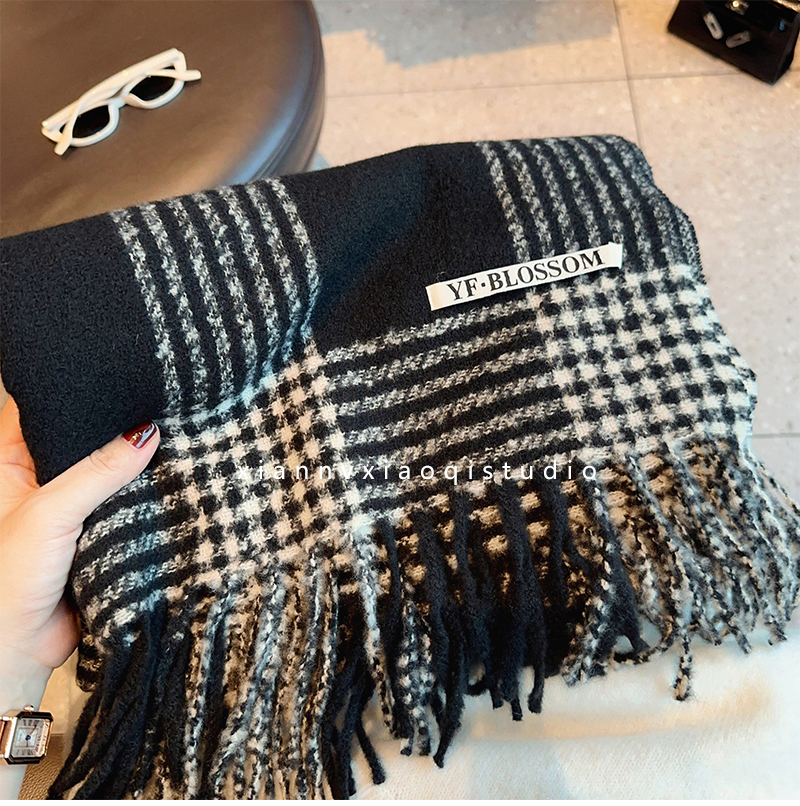 바다 소금 블루 영국 격자 무늬 스카프 여자 한국식 분위기 겨울 새 올매치 화이트 따뜻한 목도리 커플 스카프