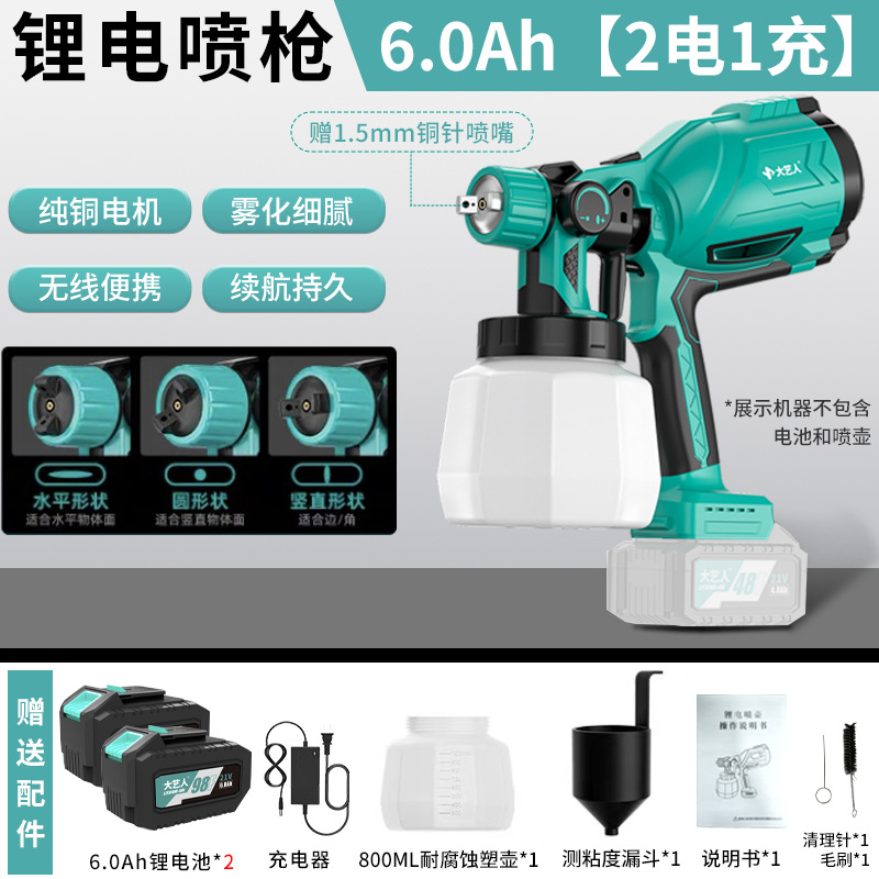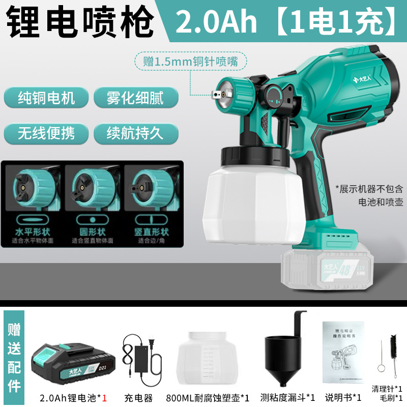 Dayi 인공 전기 스프레이 페인트 총 스프레이 총 라텍스 페인트 스프레이 기계 가정용 작은 리튬 배터리 높은 분무 스프레이 캔