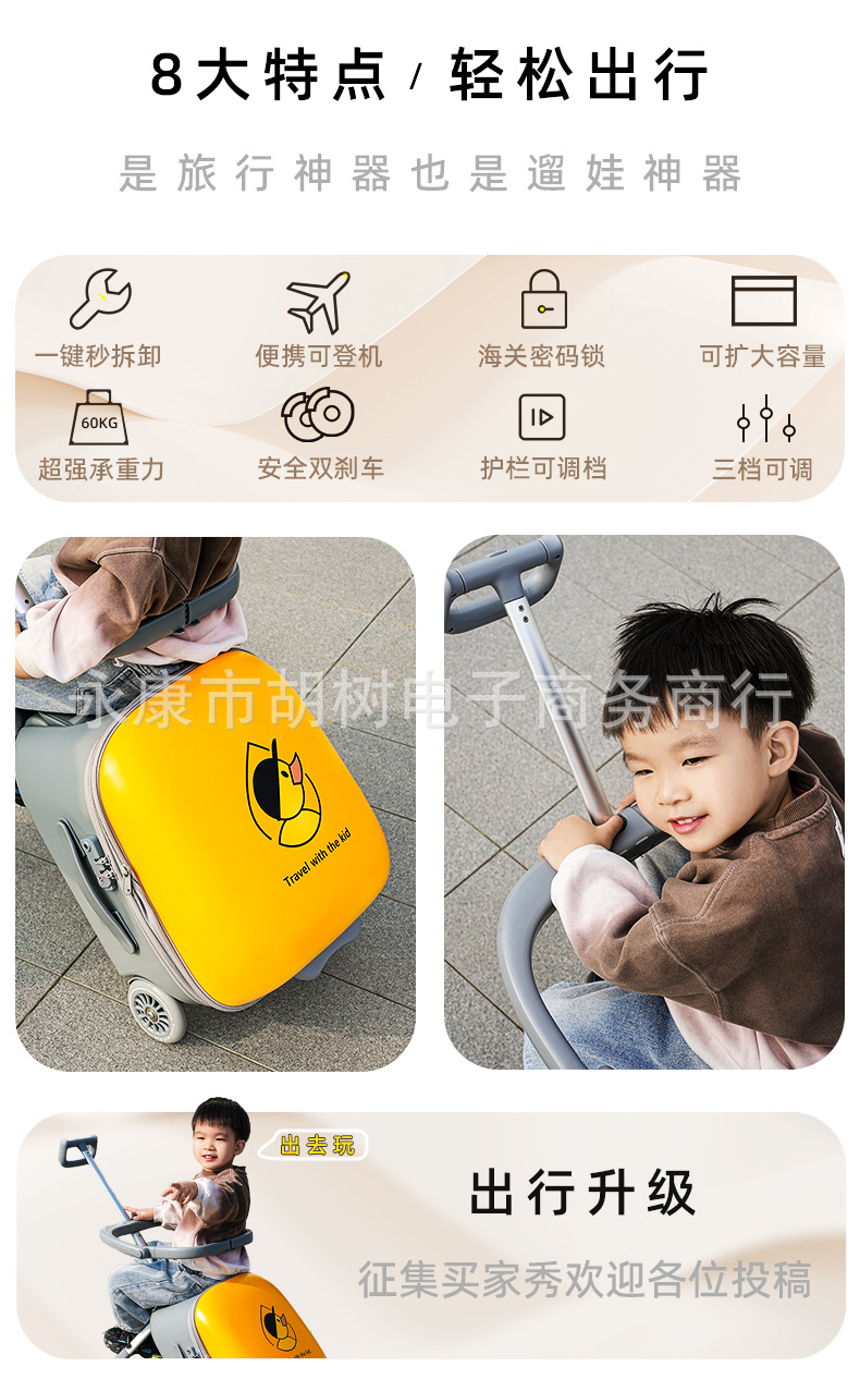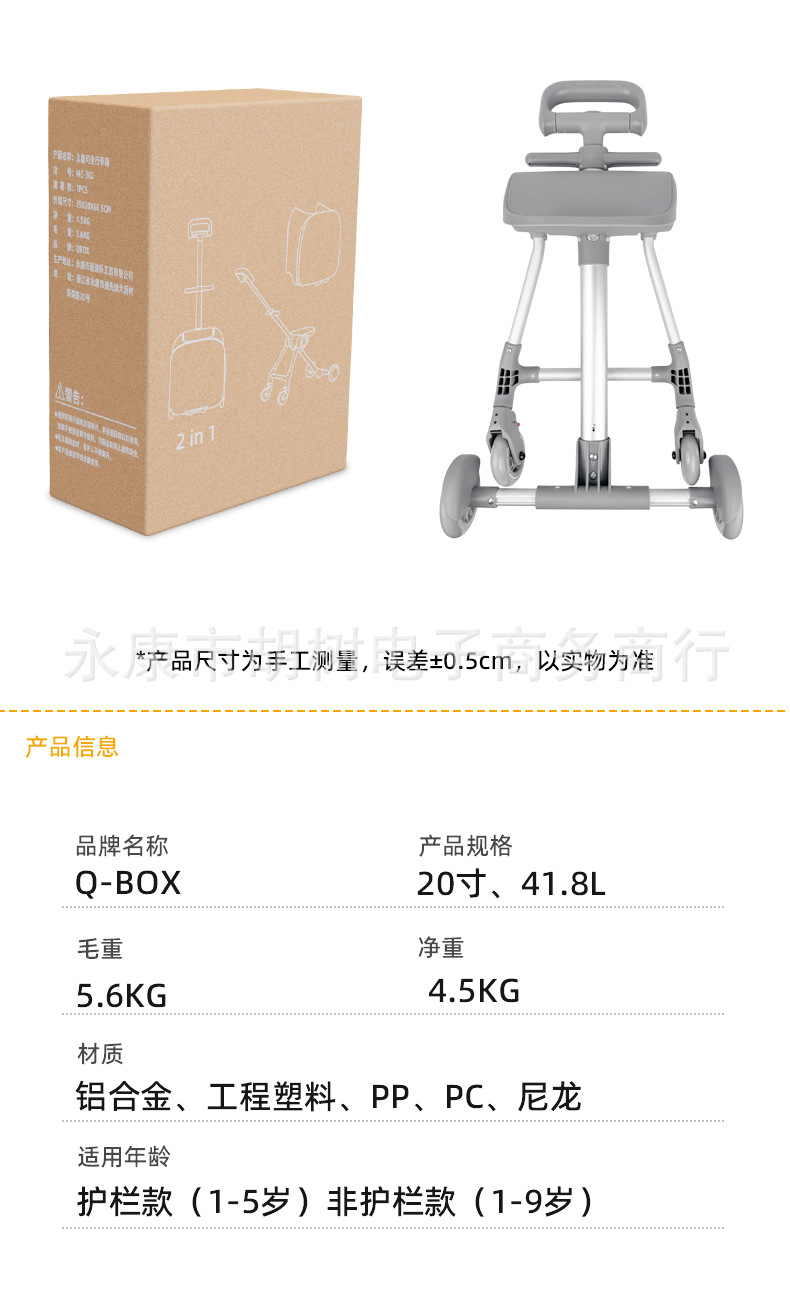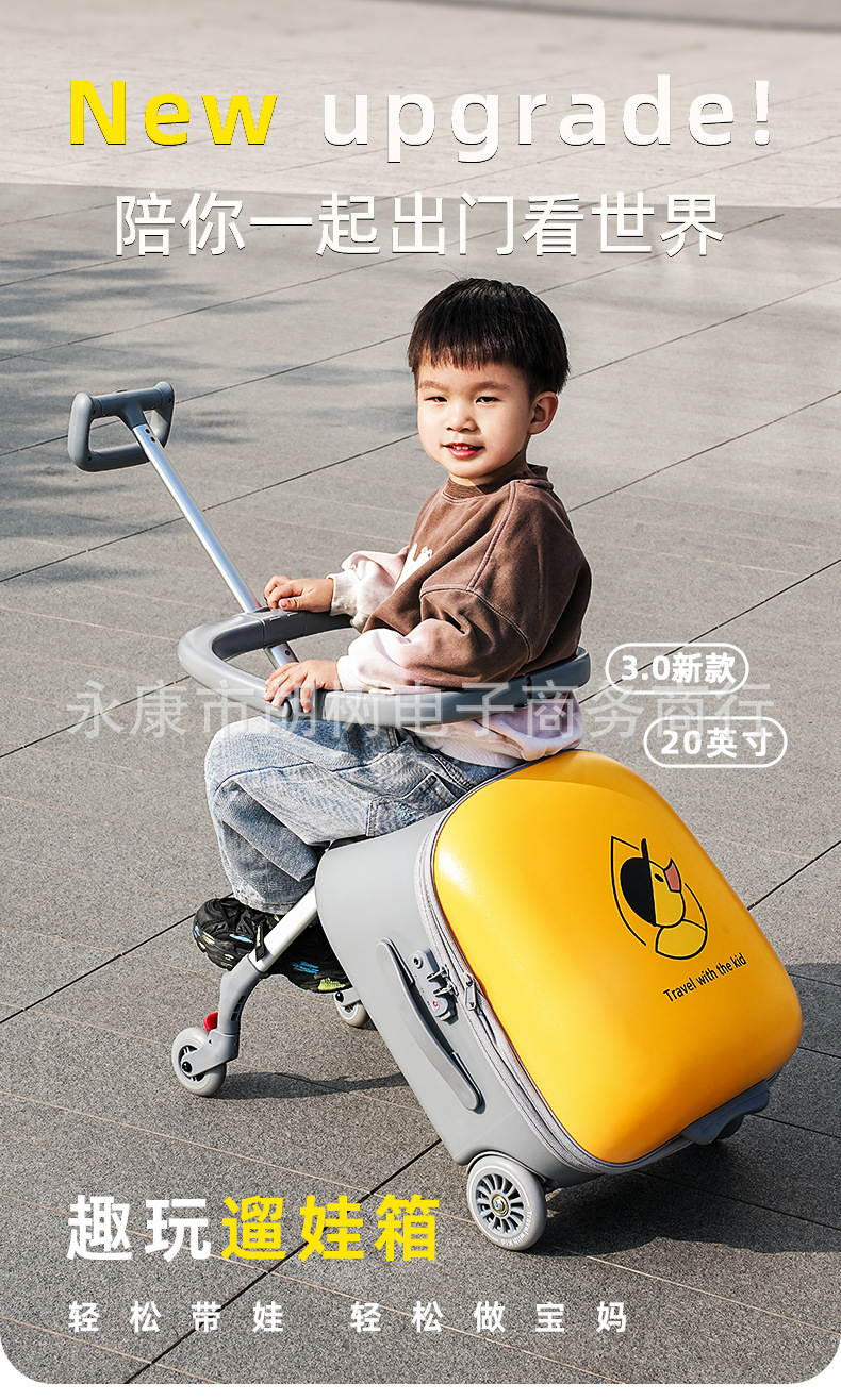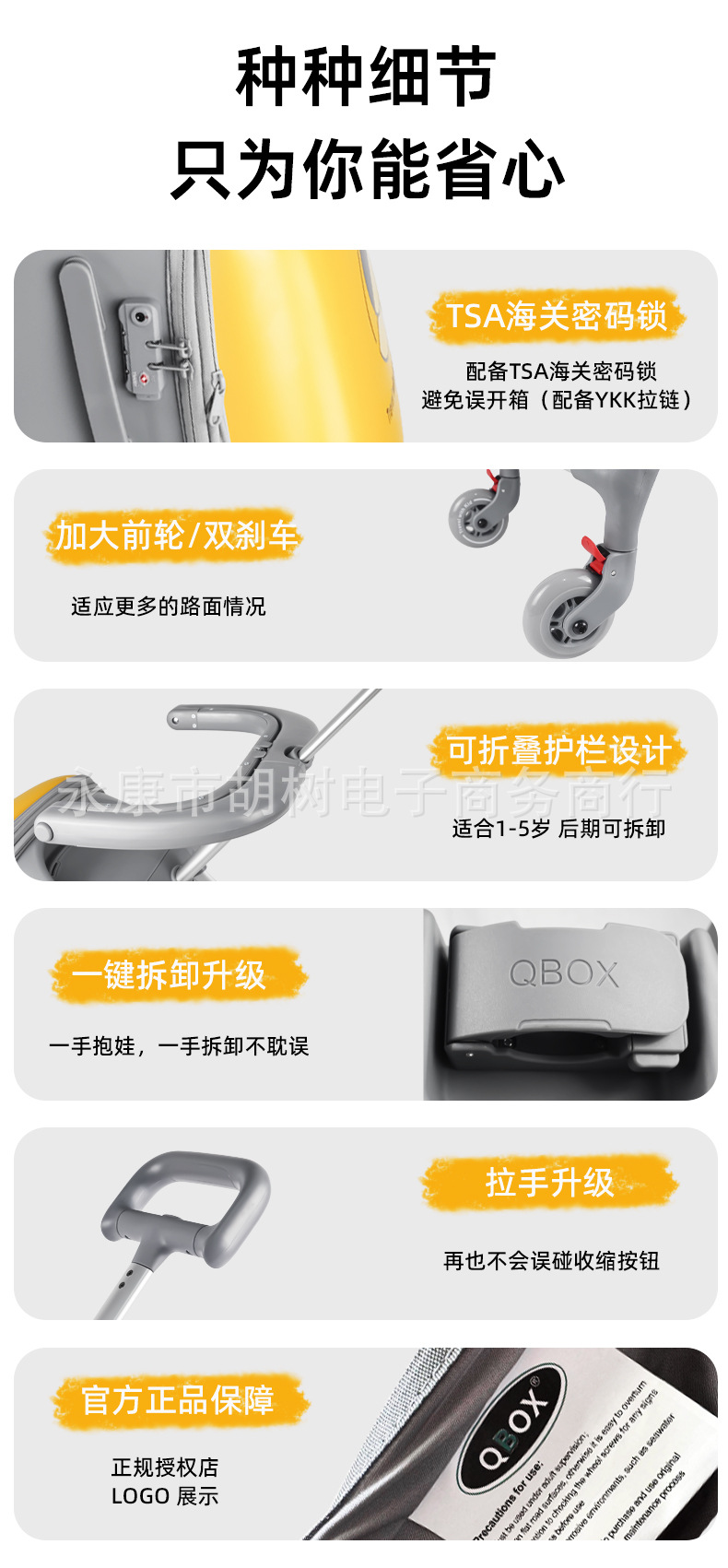 QBOX 유아용 여행가방, 어린이가 탈 수 있는 게으른 유아용 여행가방, 남아 및 여아용 탑승 트롤리 여행가방