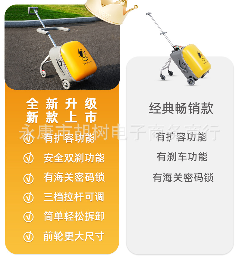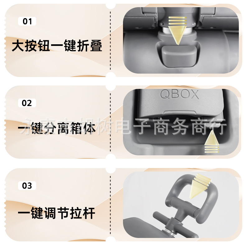 这款是最新款式的单杆行李箱,拉杆有多个档位可以调节,D型款式的把手设计,还有一键拆卸的设计,在原本的基础上升级了。款式配置标配有海关锁+刹车+扩容的设计!