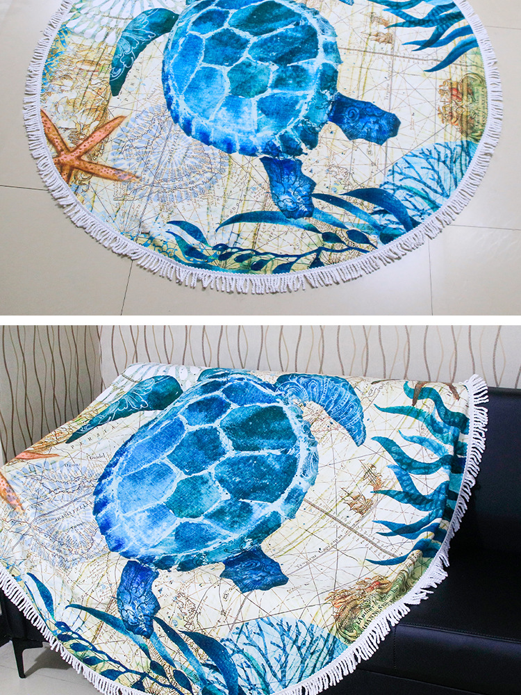 디지털 프린트 극세사 프린지 원형 비치 타월 해변 서핑 수영 숄 목욕 타월 흡수성 빠른 건조스토어 가기