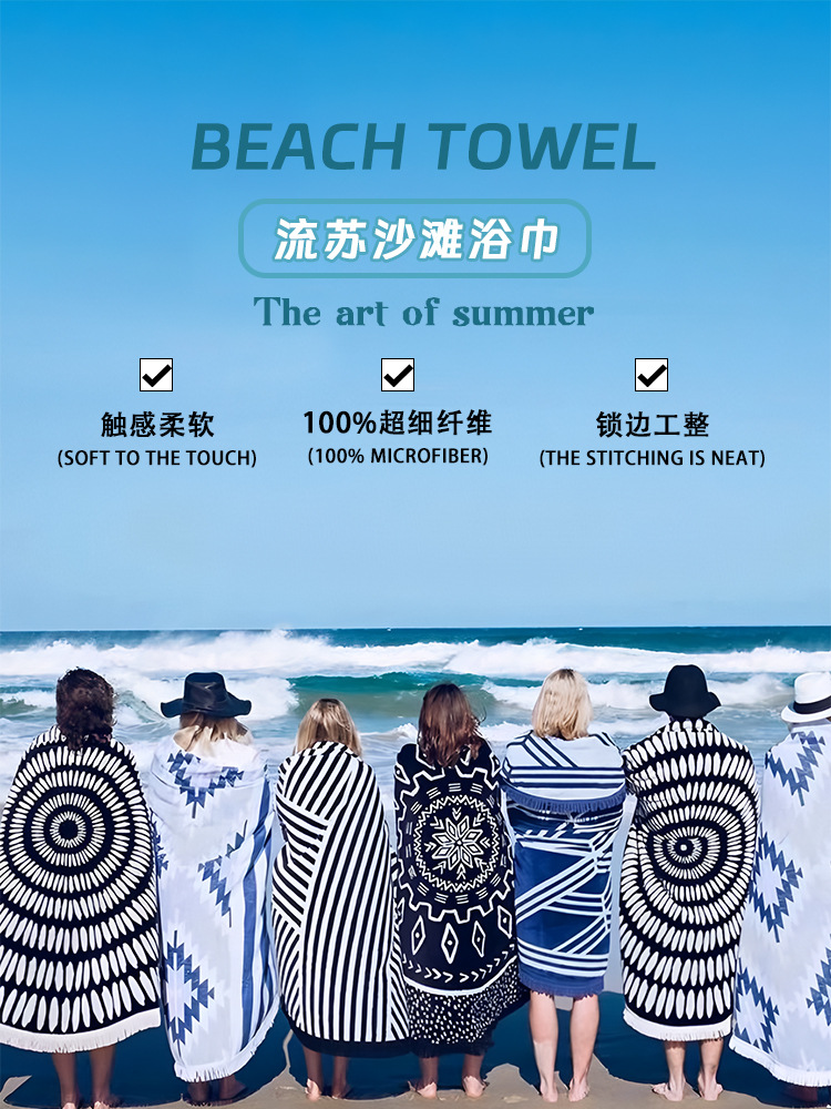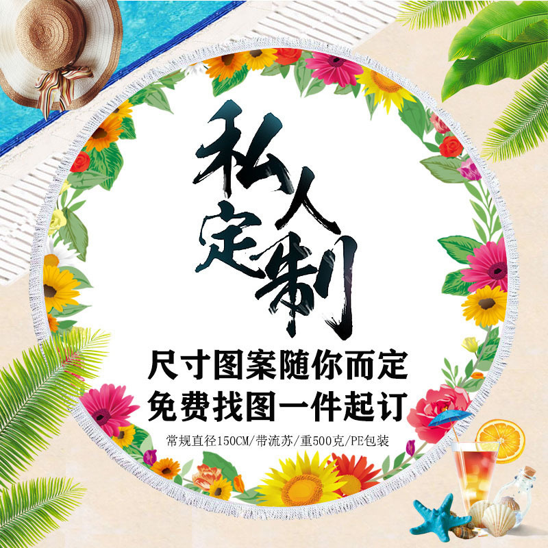 디지털 프린트 극세사 프린지 원형 비치 타월 해변 서핑 수영 숄 목욕 타월 흡수성 빠른 건조