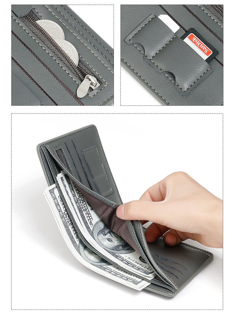 대외 무역 남자의 짧은 PU 가죽 지갑 유행 사업 대용량 멀티 카드 인증서 2 배 지갑 도매스토어 가기