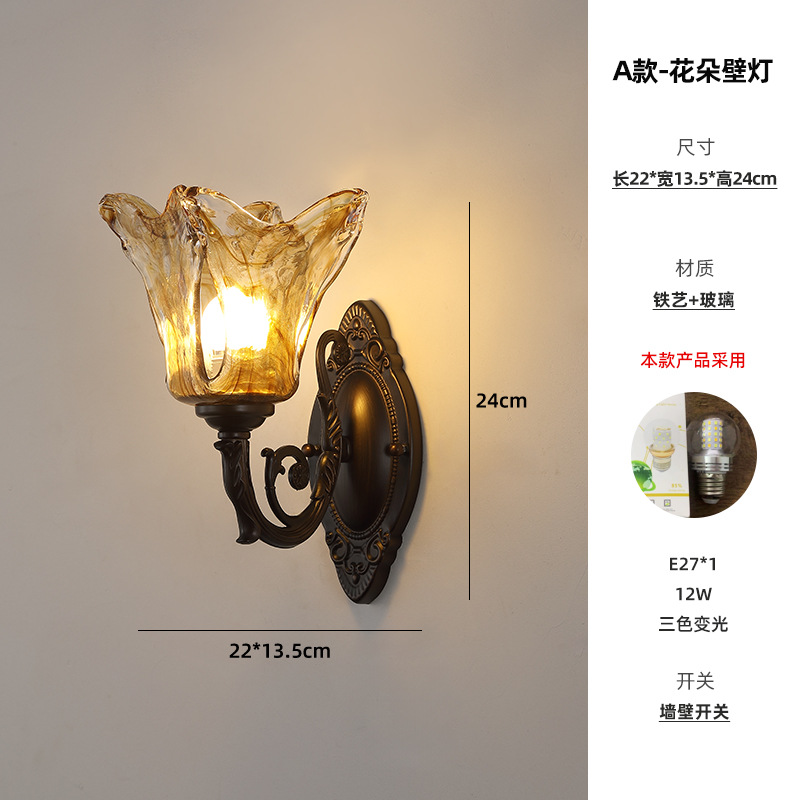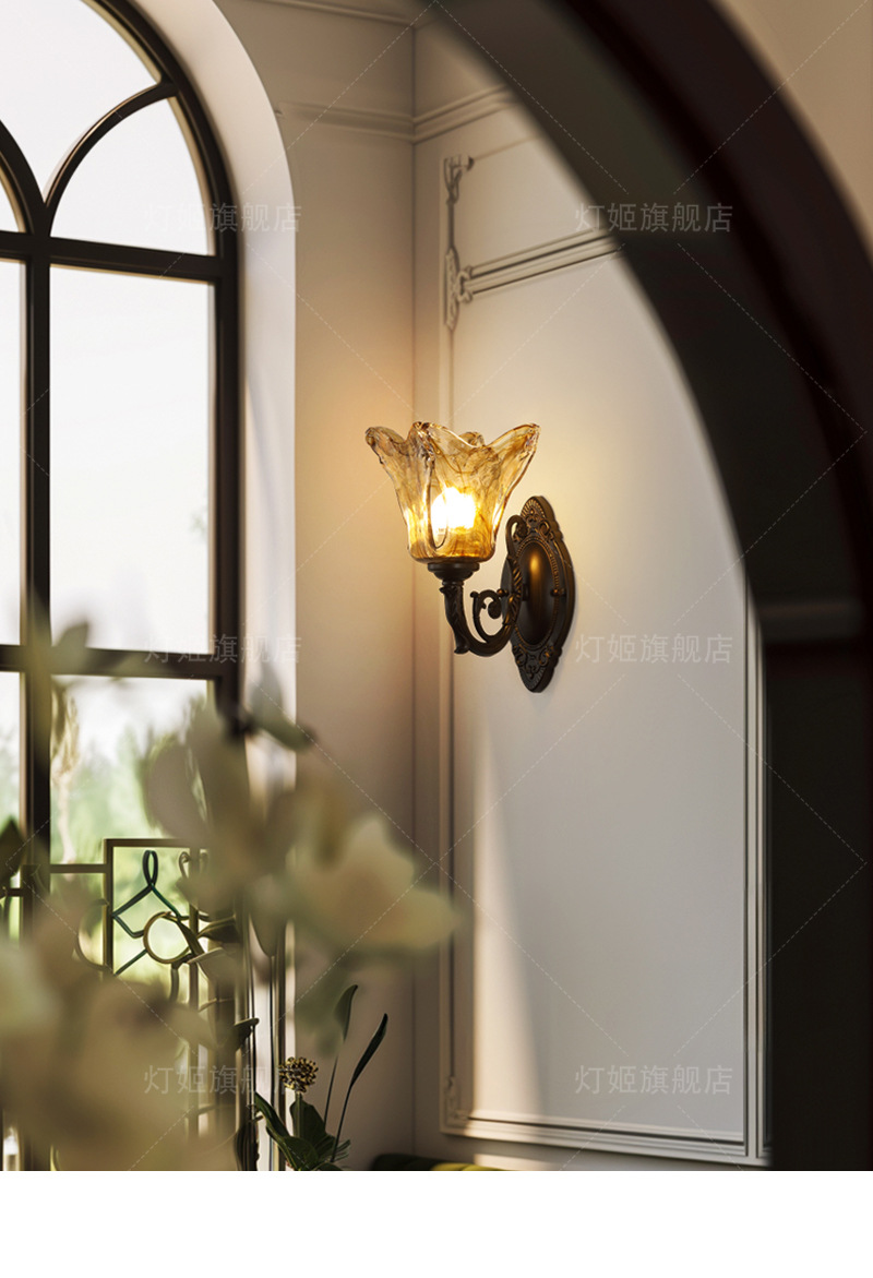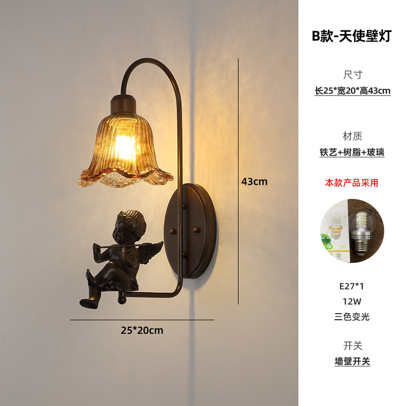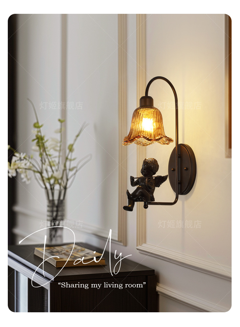 프랑스 중세 스타일 침대 옆 벽 램프, 고급 창의적 미국 복고풍 거실 침실 예술 작은 천사 벽걸이 램프