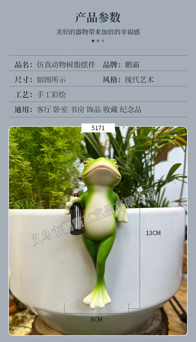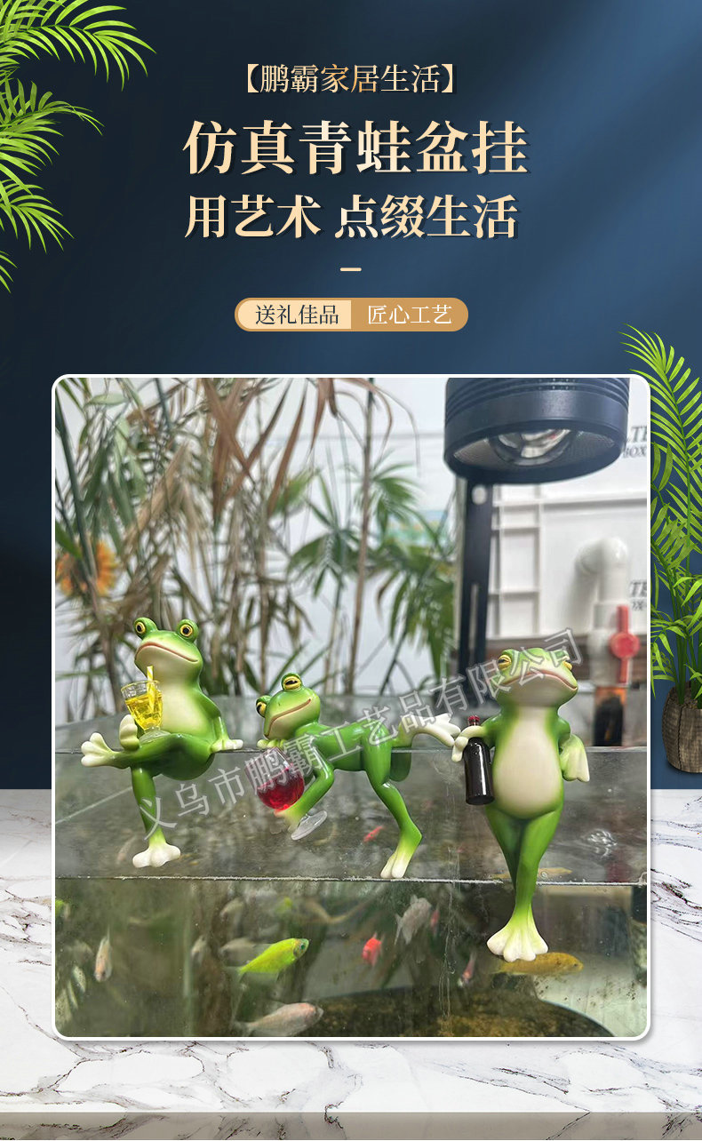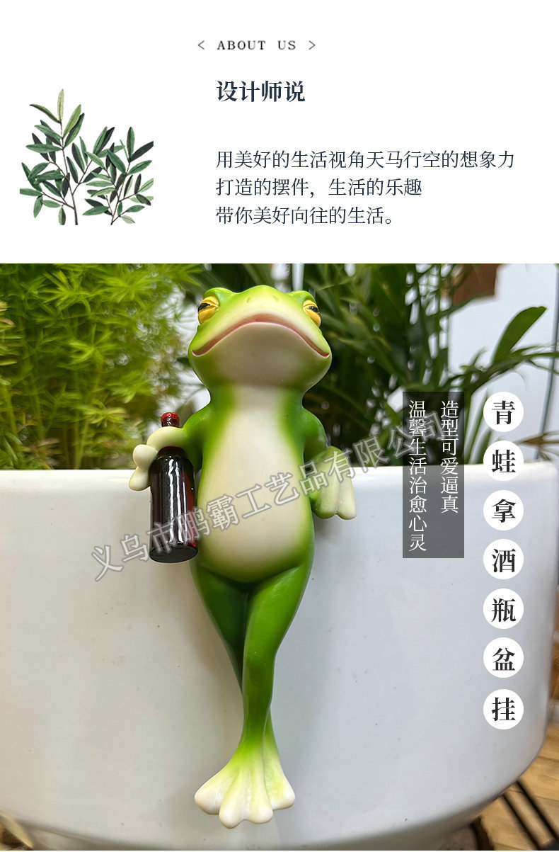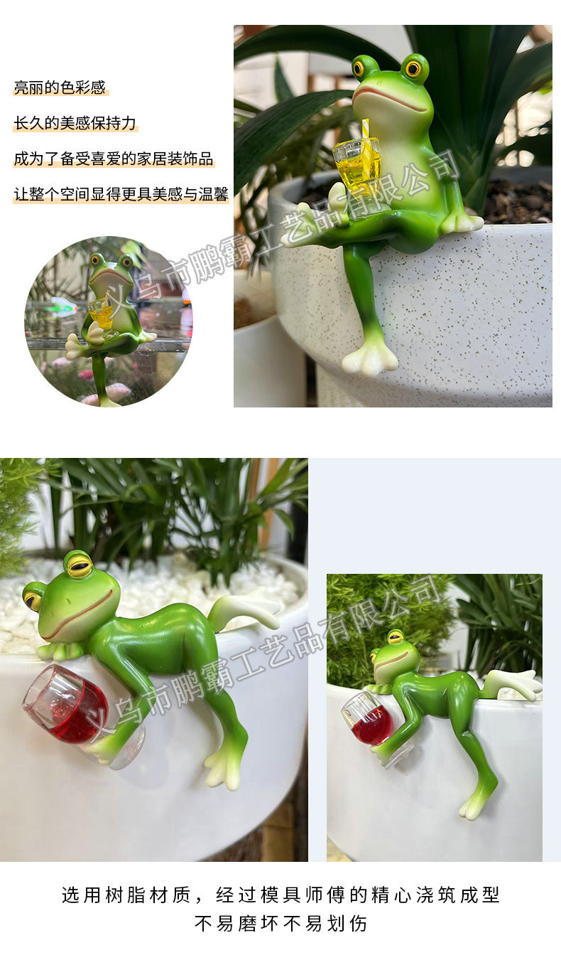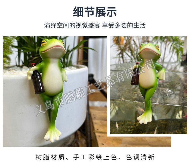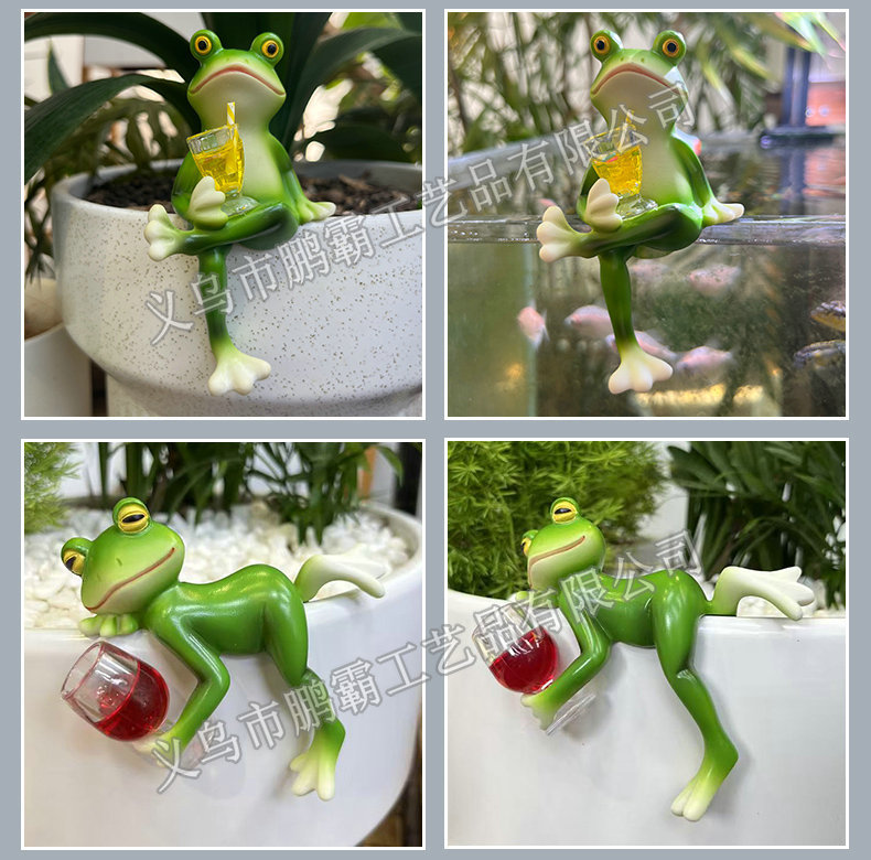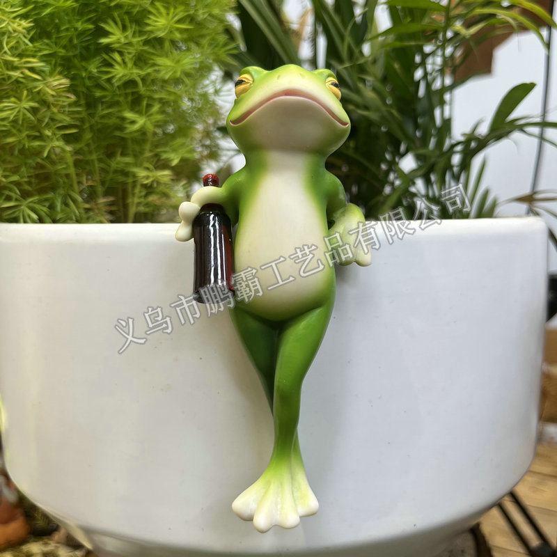 개구리 냄비 매달려 꽃 냄비 가장자리 매달려 장식 유리 물고기 탱크 펜던트 야외 안뜰 시뮬레이션 동물 수지 장식