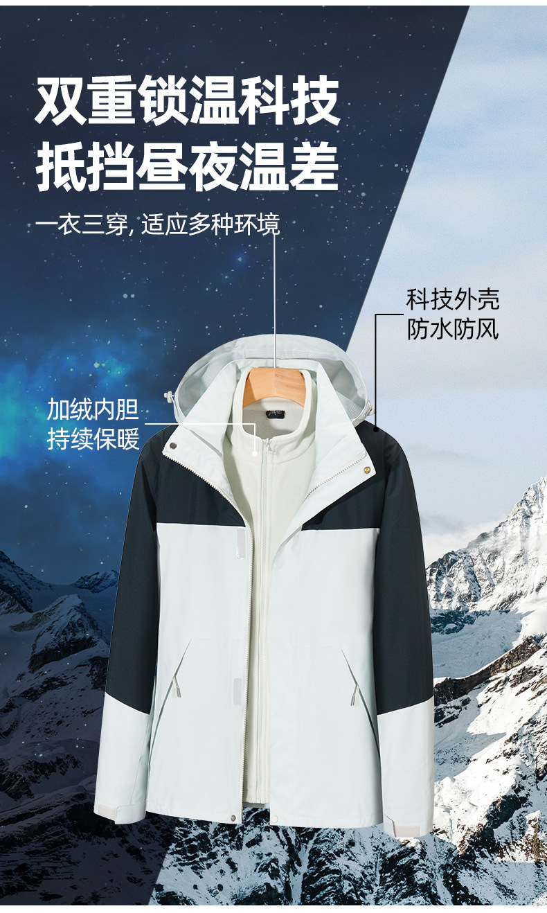 야외 충전 의류 여성용 3 대 1 2 피스 세트 분리 가능한 커플의 가을과 겨울 여행 등산 낚시 의류 남성 코트