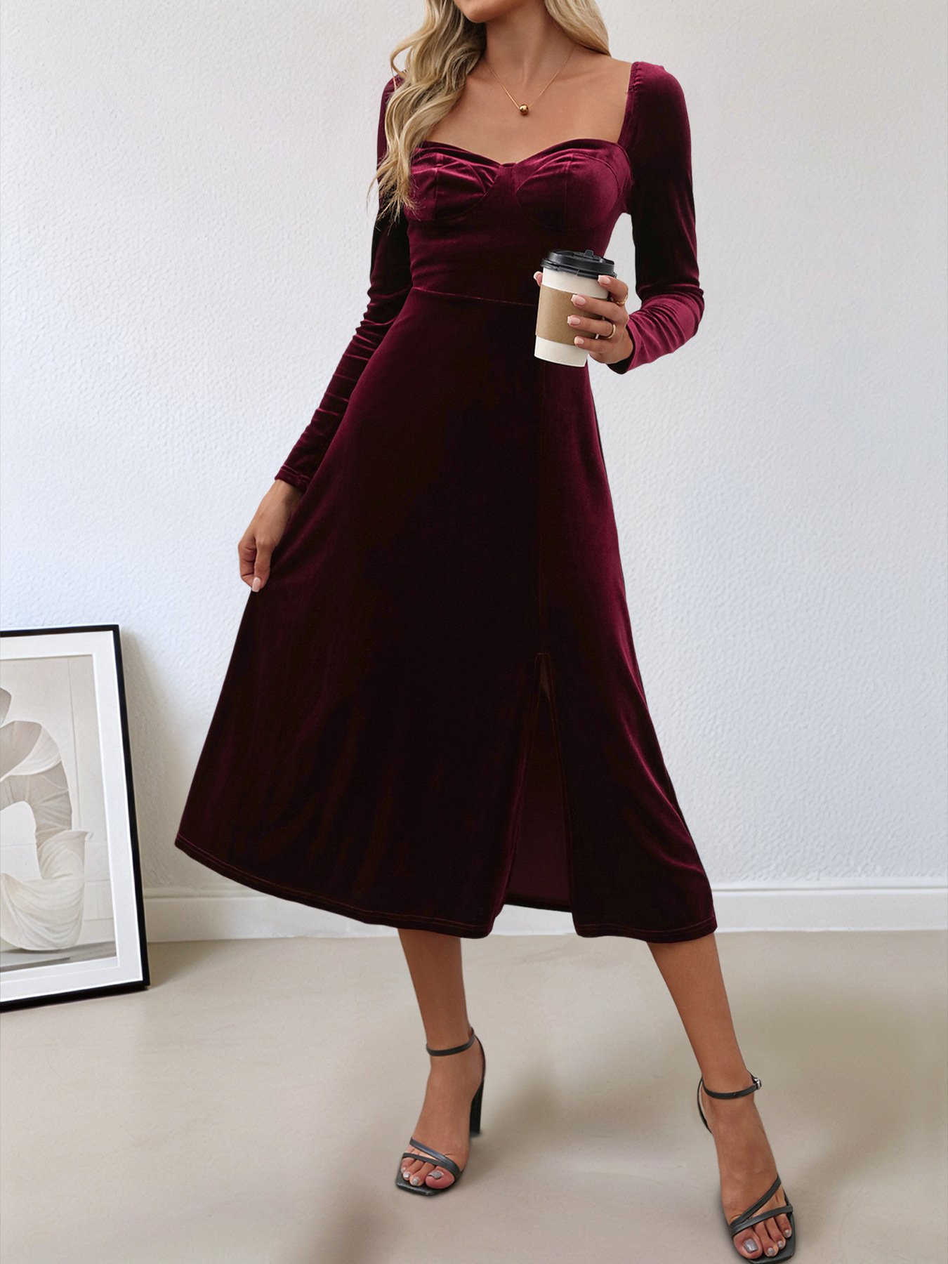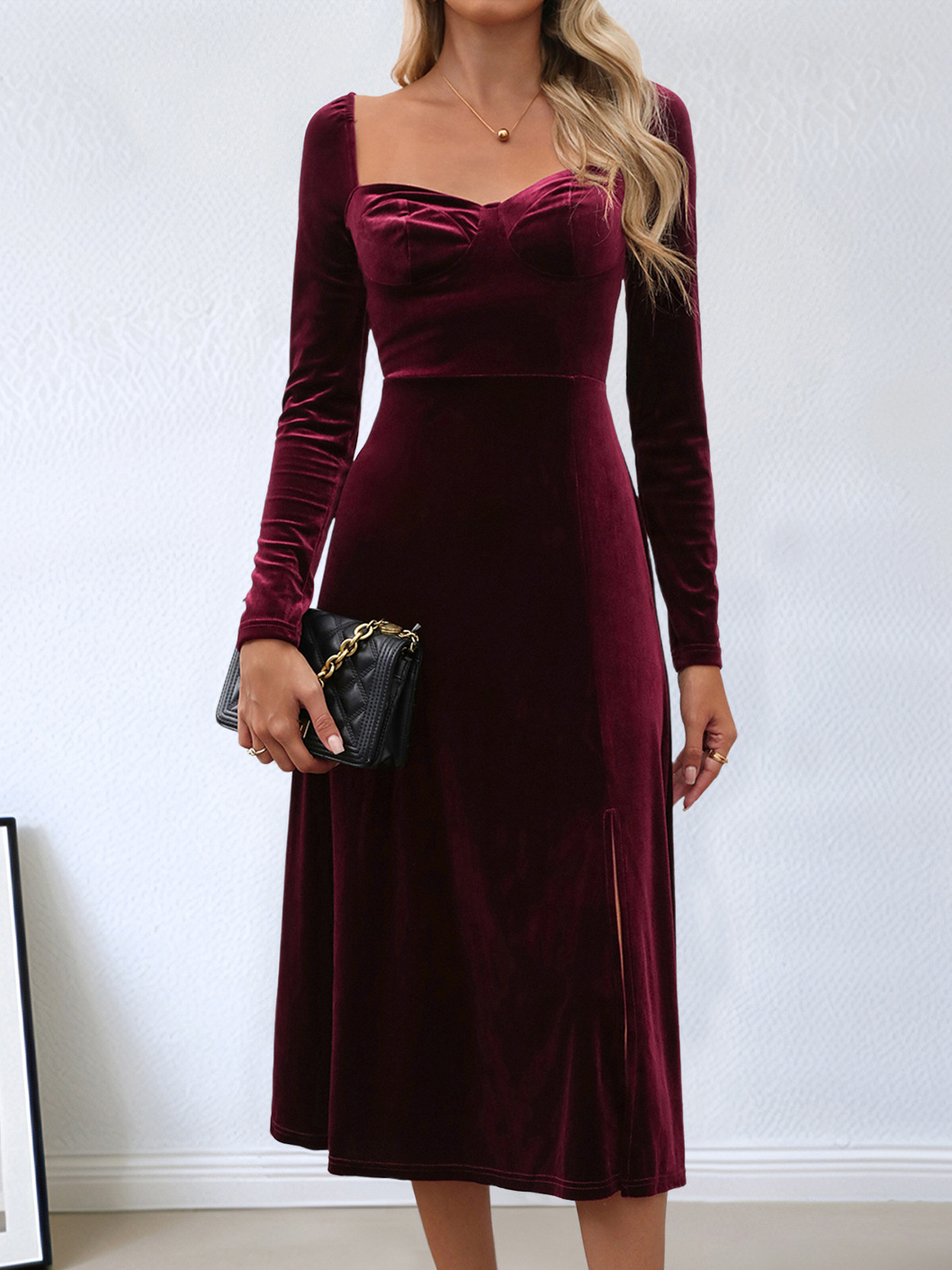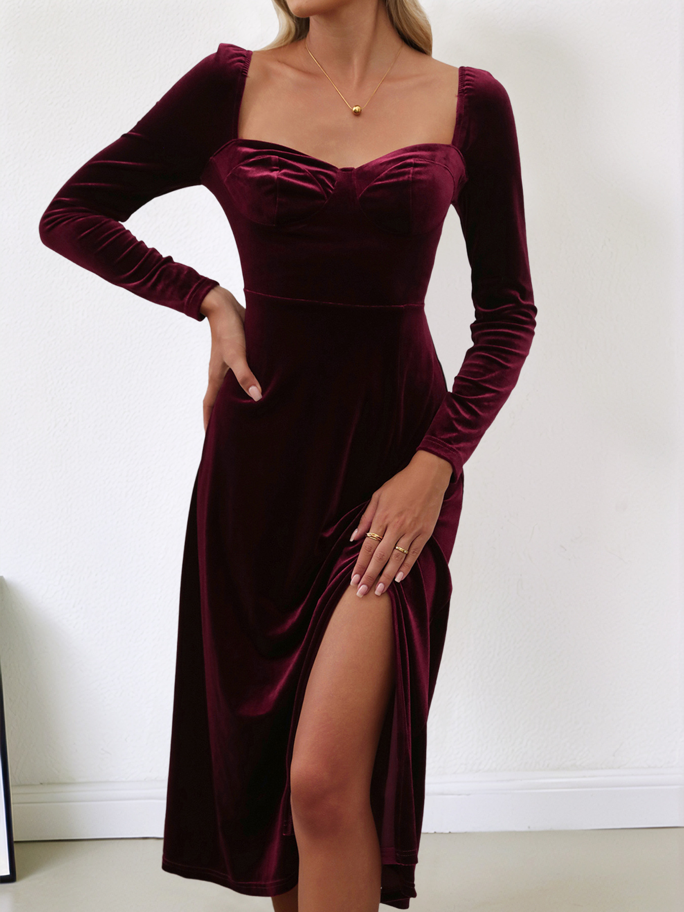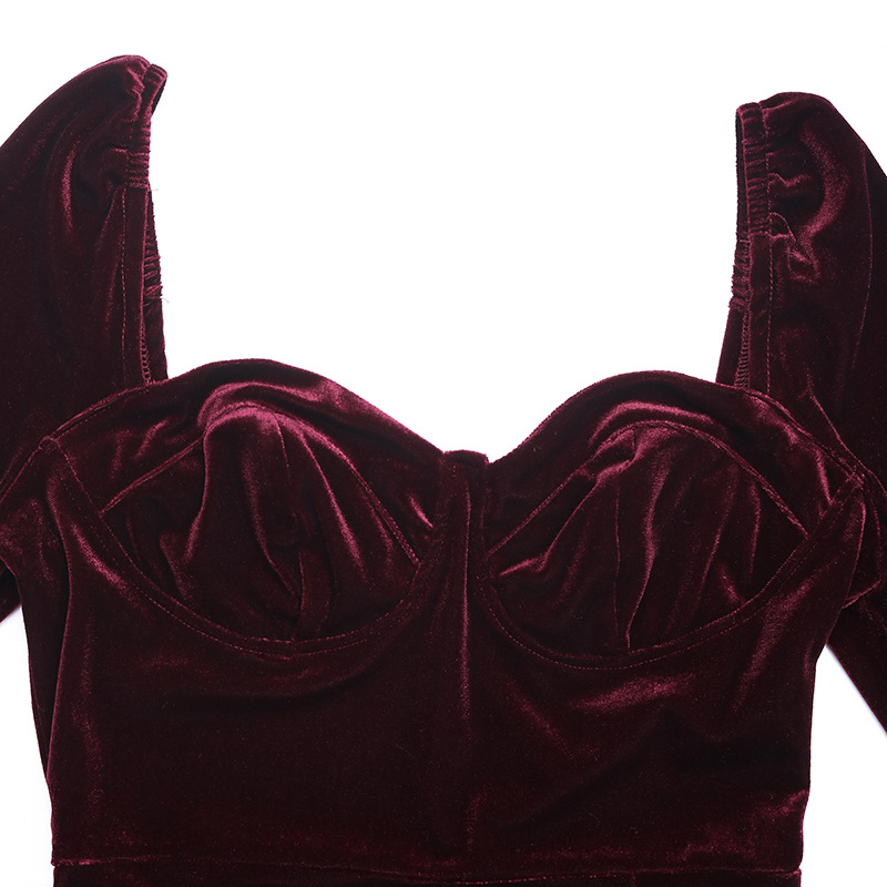 아마존 유럽과 미국 여성의 2024 가을/겨울 파티 벨벳 긴 원피스 대외 무역 가을/겨울 원피스 분할 원피스스토어 가기