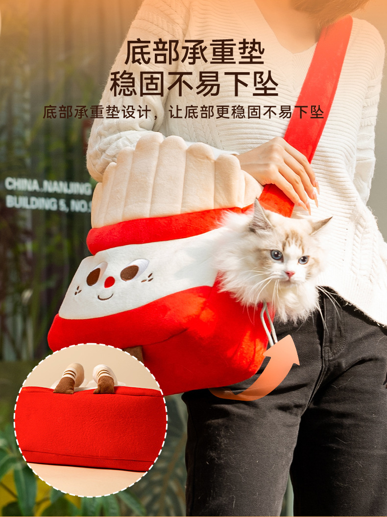 인터넷 축하 재미있는 햄버거 프라이 스타일 고양이 외출 가방 가을과 겨울 따뜻한 개 메신저 가방 애완 동물 가방스토어 가기