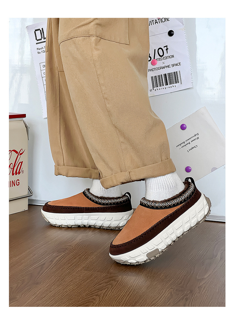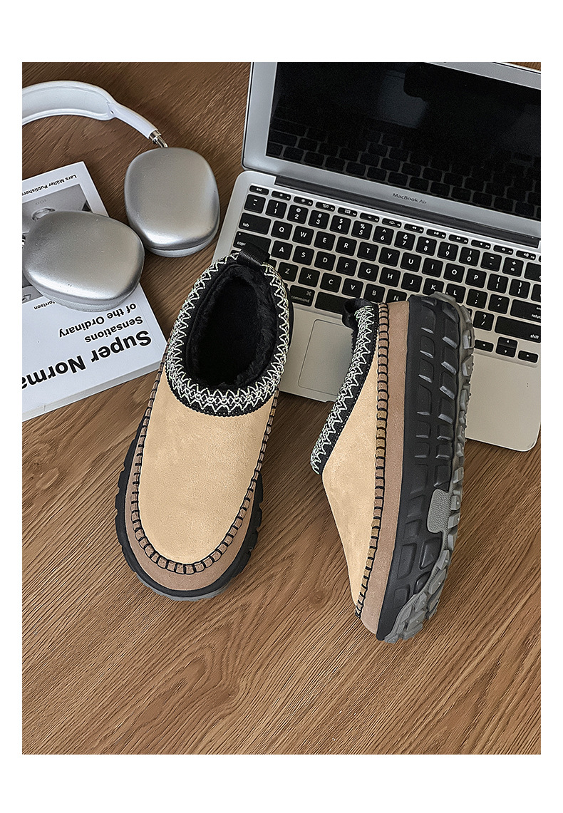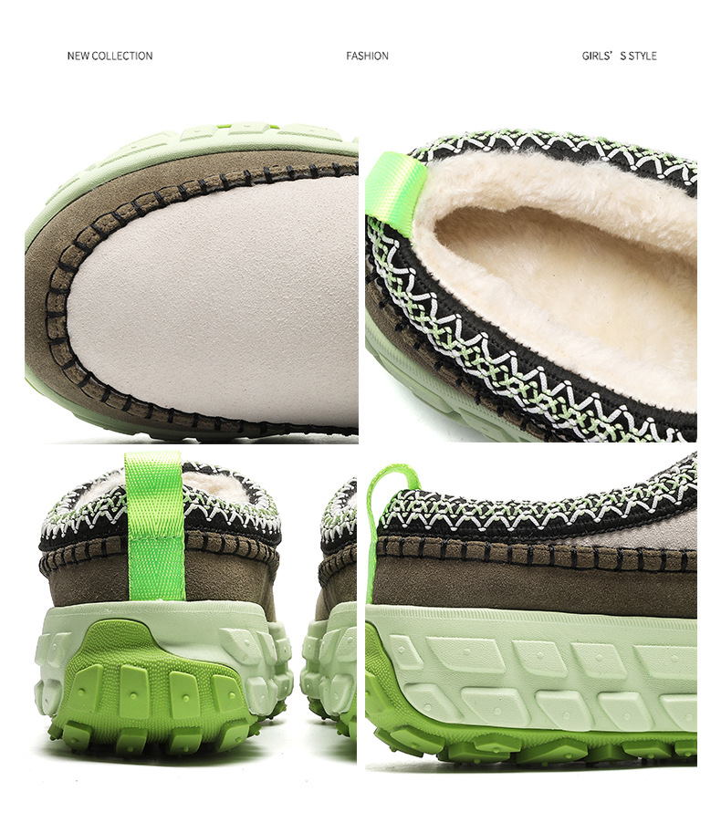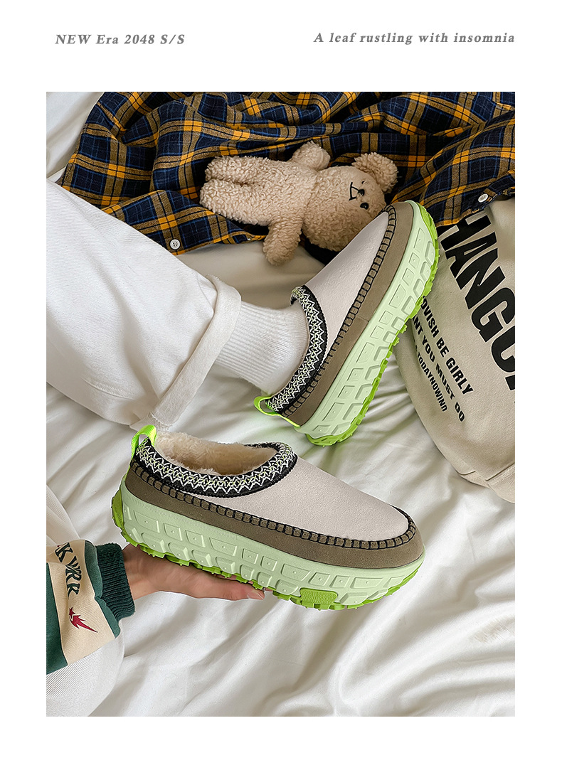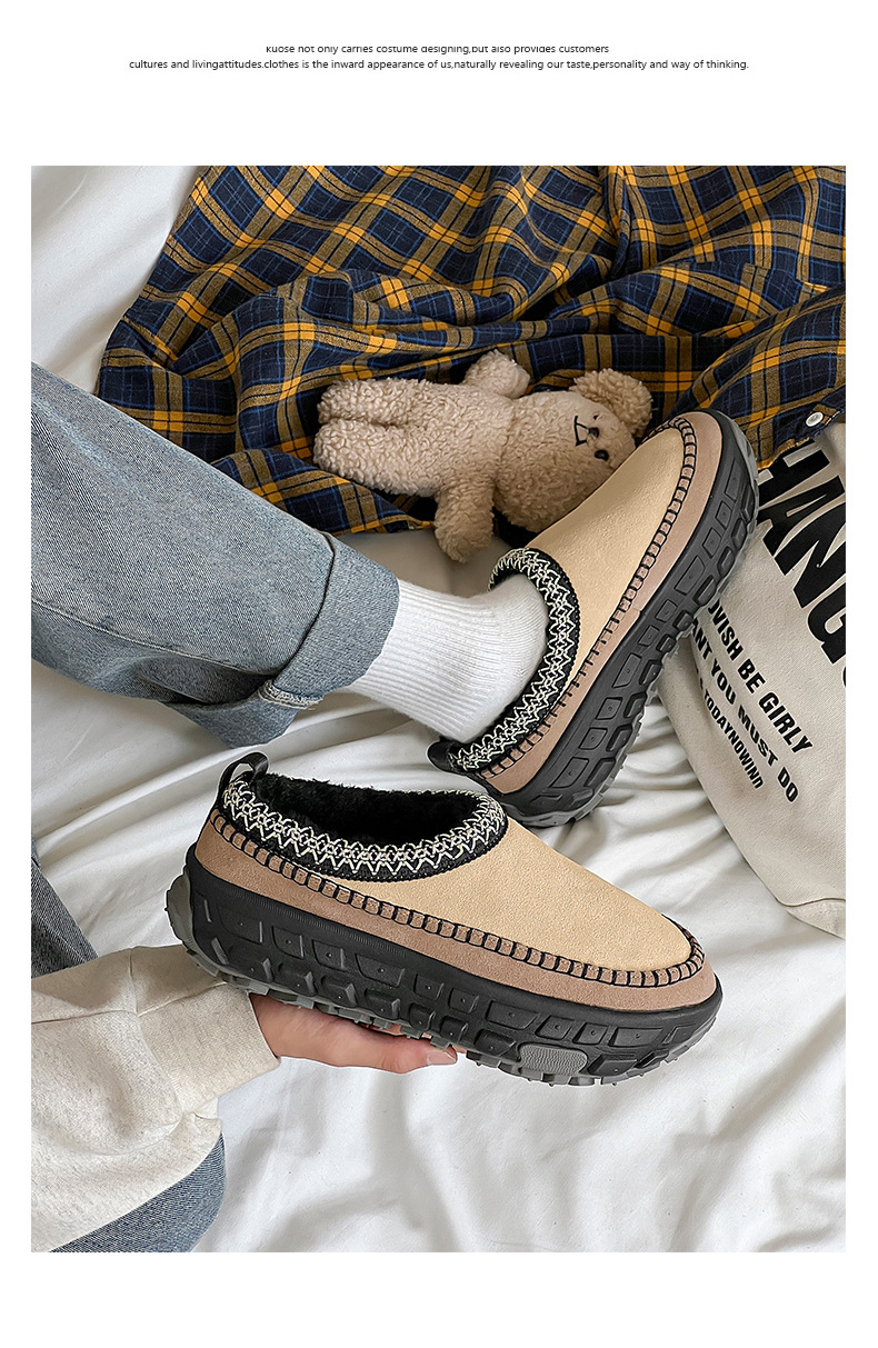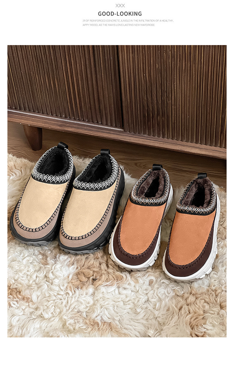 2024 겨울 애호가 새로운 가죽 두꺼운 벨벳 타이어 바닥 스노우 부츠 두꺼운 바닥 증가 페달 게으른 여성 면화스토어 가기