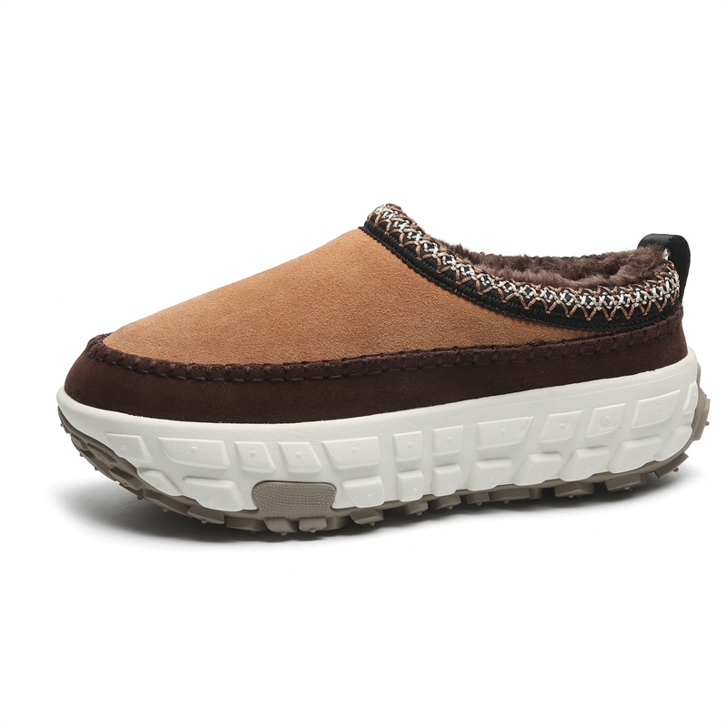 2024 겨울 애호가 새로운 가죽 두꺼운 벨벳 타이어 바닥 스노우 부츠 두꺼운 바닥 증가 페달 게으른 여성 면화