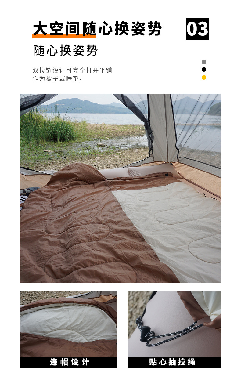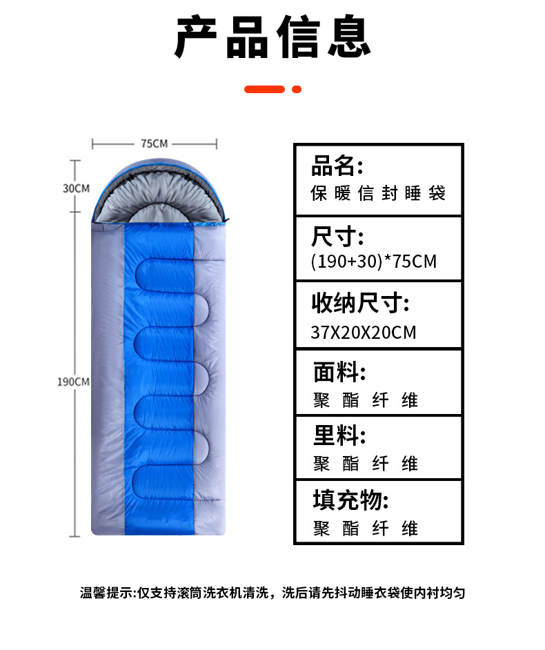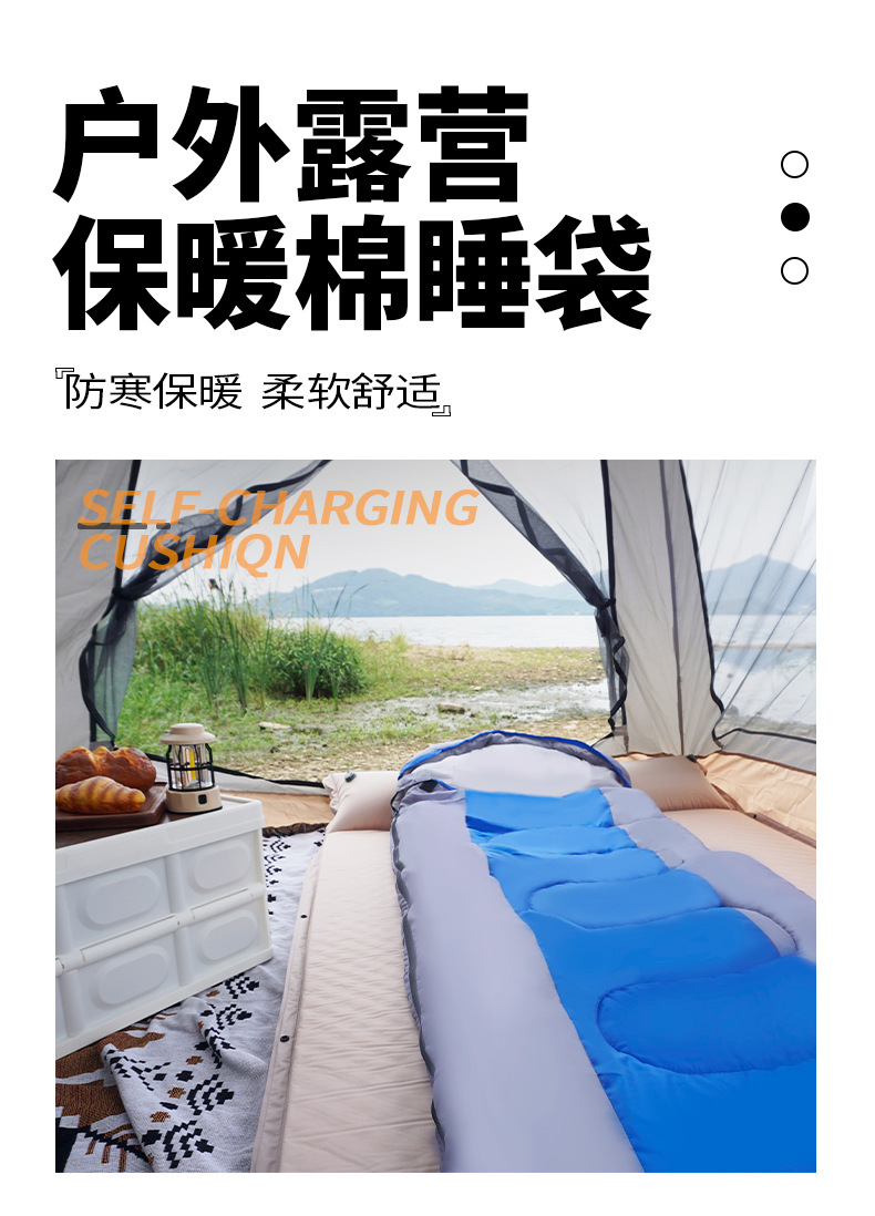야외 캠핑 침낭 가을과 겨울 두꺼운 봉투 후드 성인 침낭 실내 점심 휴식 냉장 따뜻한 단일 침낭스토어 가기