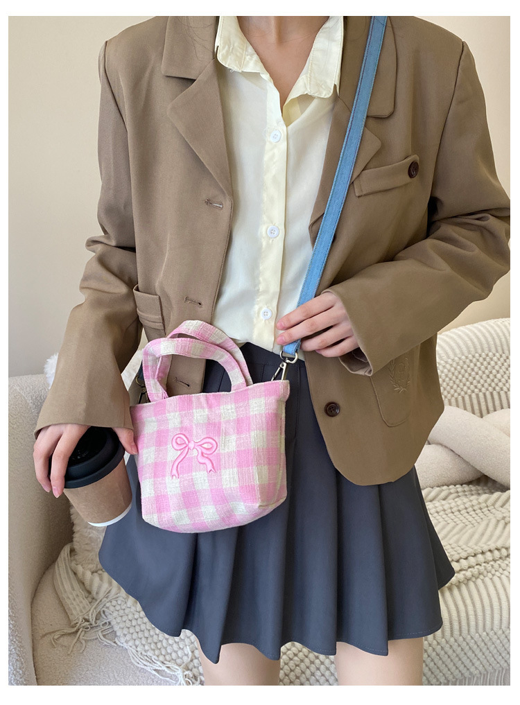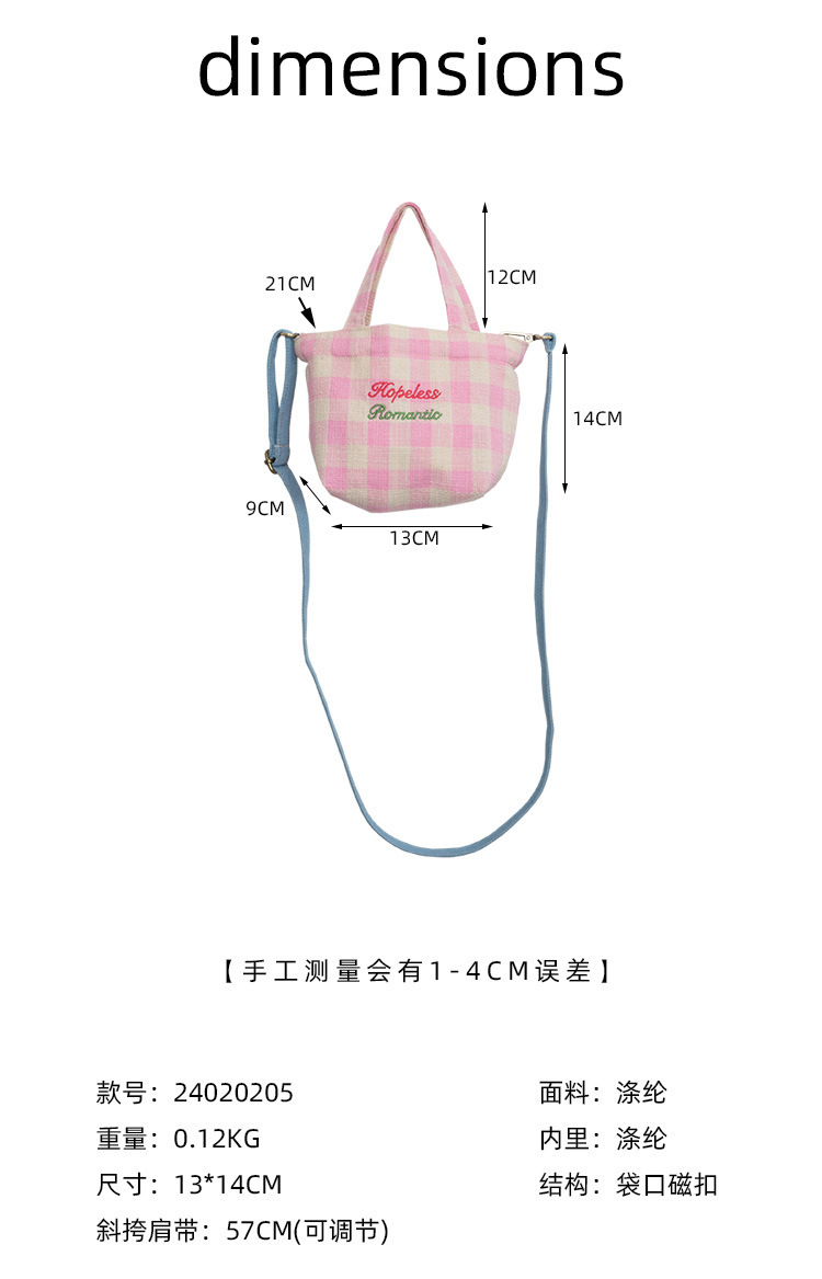• 희망적인 작은 크로스바디 핑크 체크 무늬