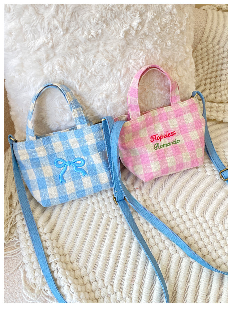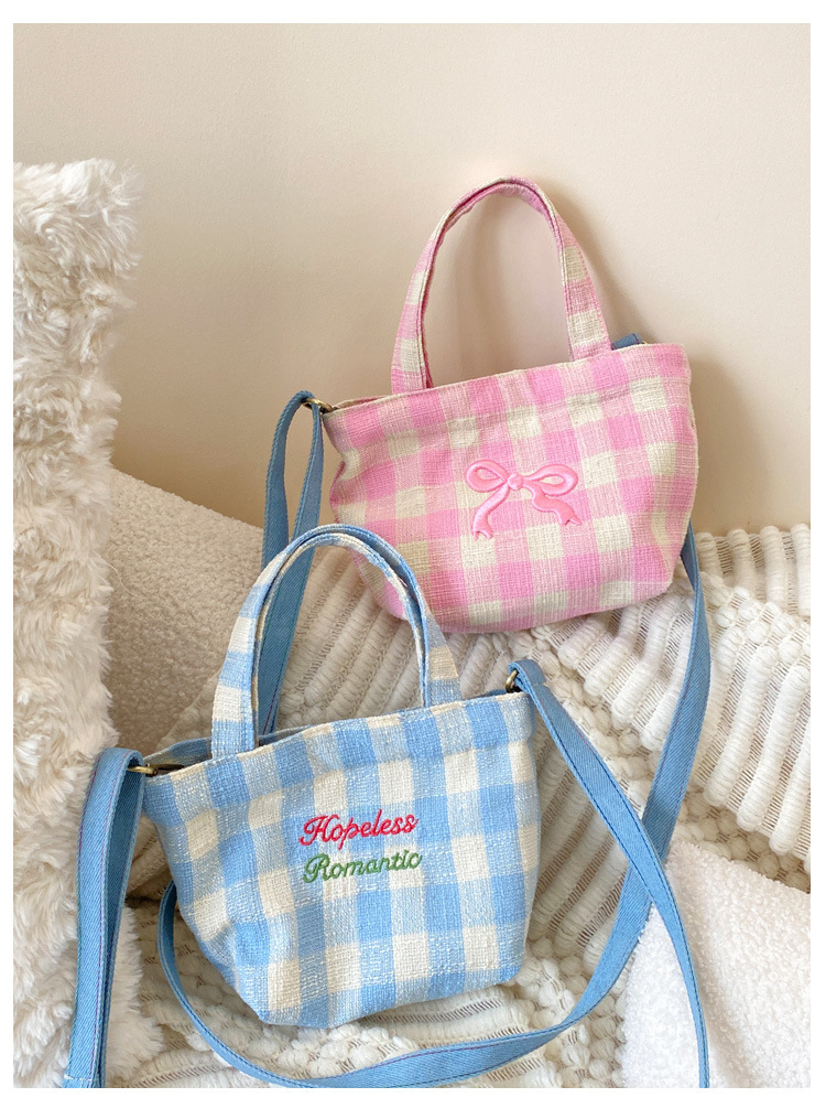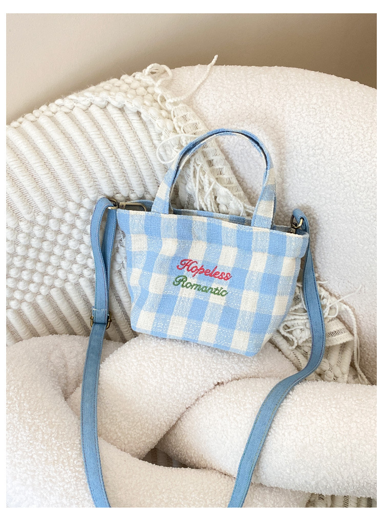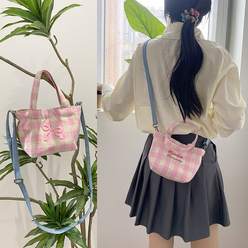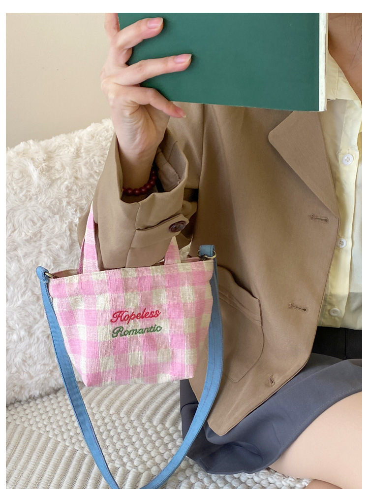 편지 격자 무늬 헝겊 가방 크로스 바디 어깨 가방 소녀의 심장 격자 무늬 캐주얼 캔버스 가방 여성용 핸드백스토어 가기