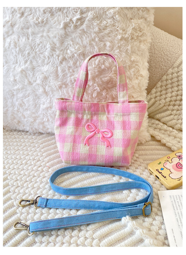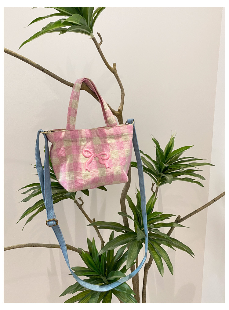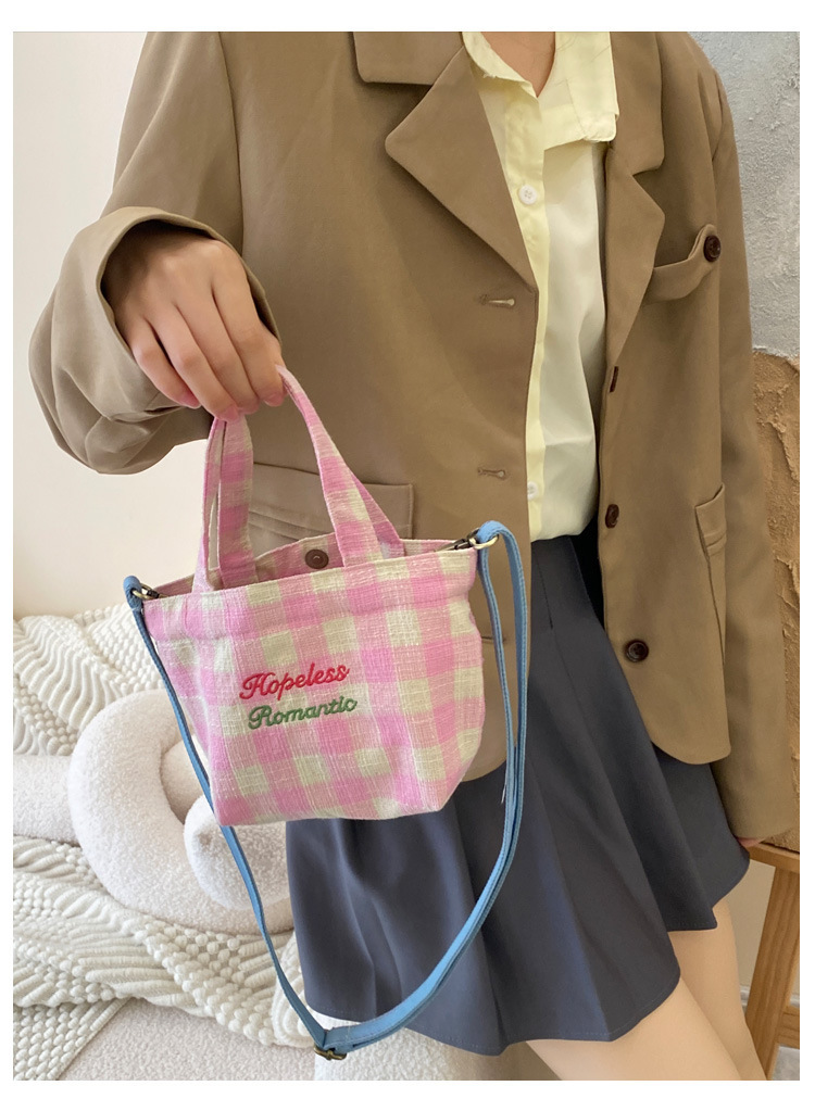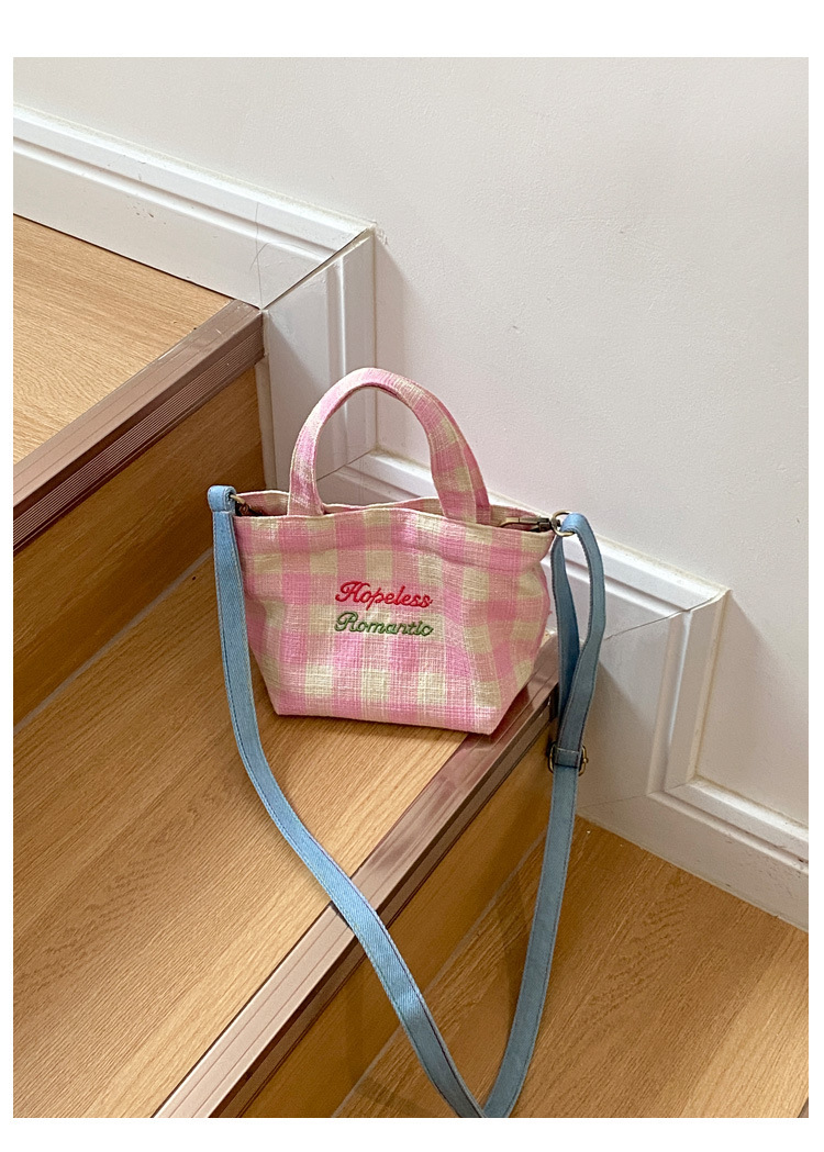 편지 격자 무늬 헝겊 가방 크로스 바디 어깨 가방 소녀의 심장 격자 무늬 캐주얼 캔버스 가방 여성용 핸드백스토어 가기
