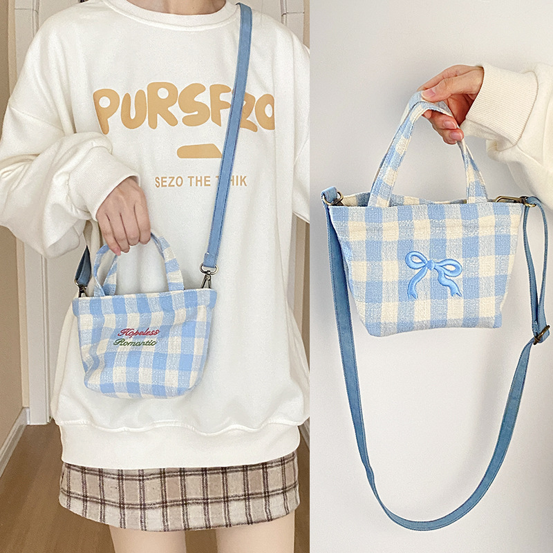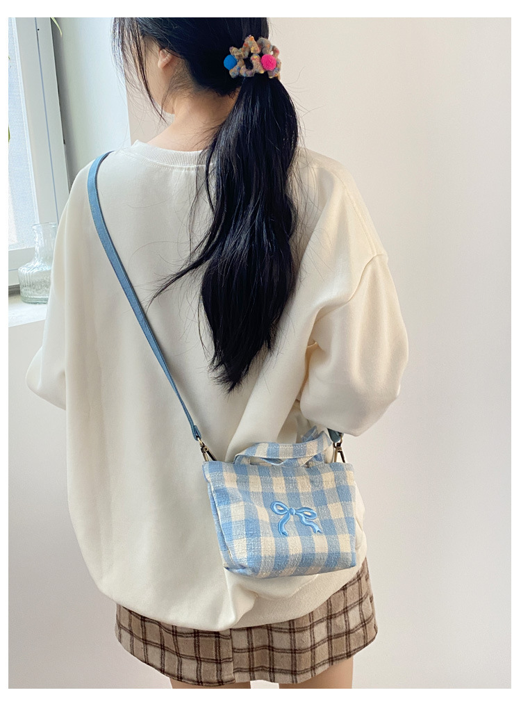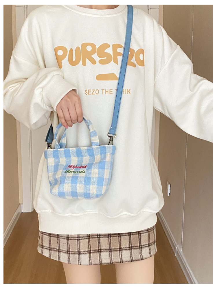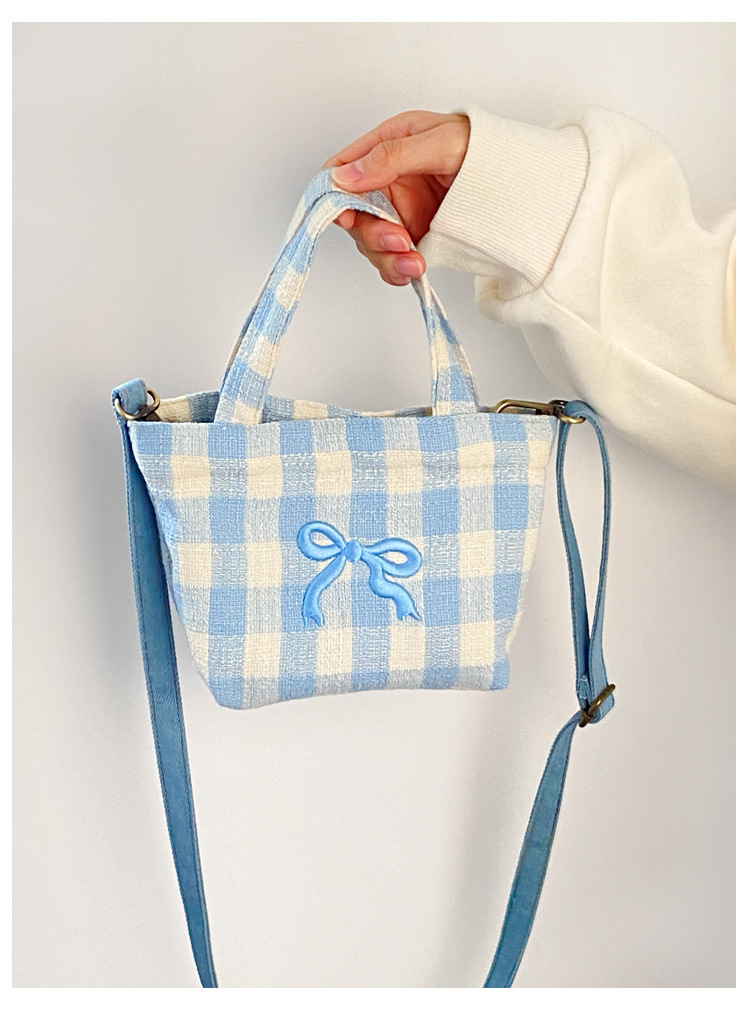 • 희망적인 작은 크로스바디 블루 체크 무늬