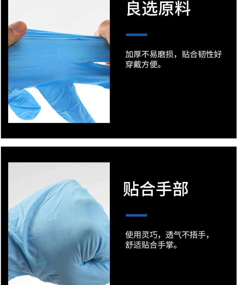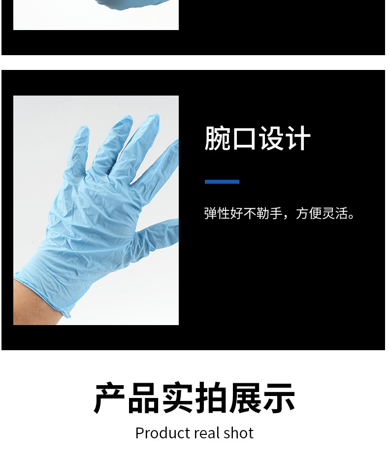 일회용 블루 니트릴 장갑 식품 등급 내구성 고무 라텍스 주방 청소 접시 방수 세척