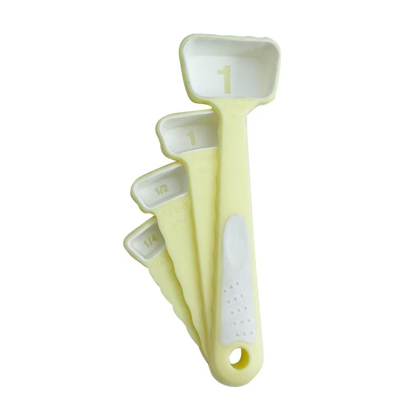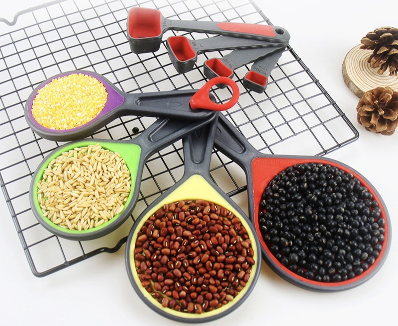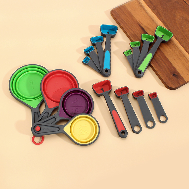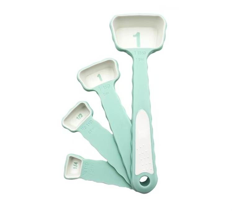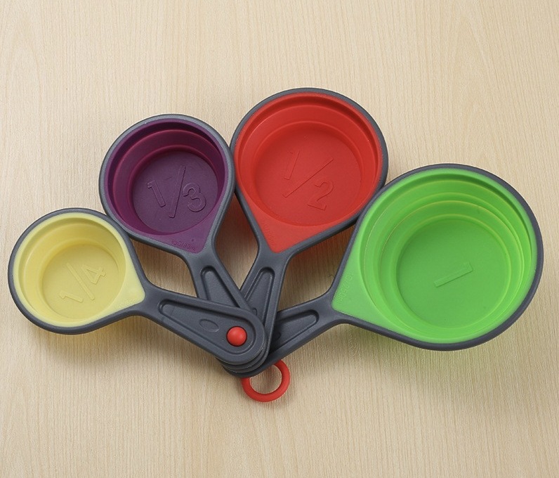 국경 간 인기 접이식 측정 컵 및 측정 스푼 4피스 세트 식품 등급 실리콘 베이킹 측정 스푼 베이킹 도구 플라스틱 새겨진